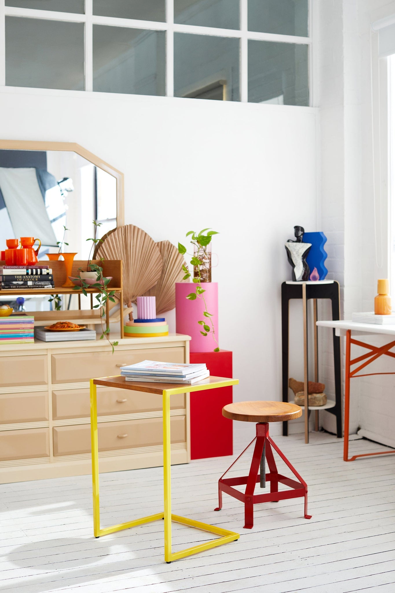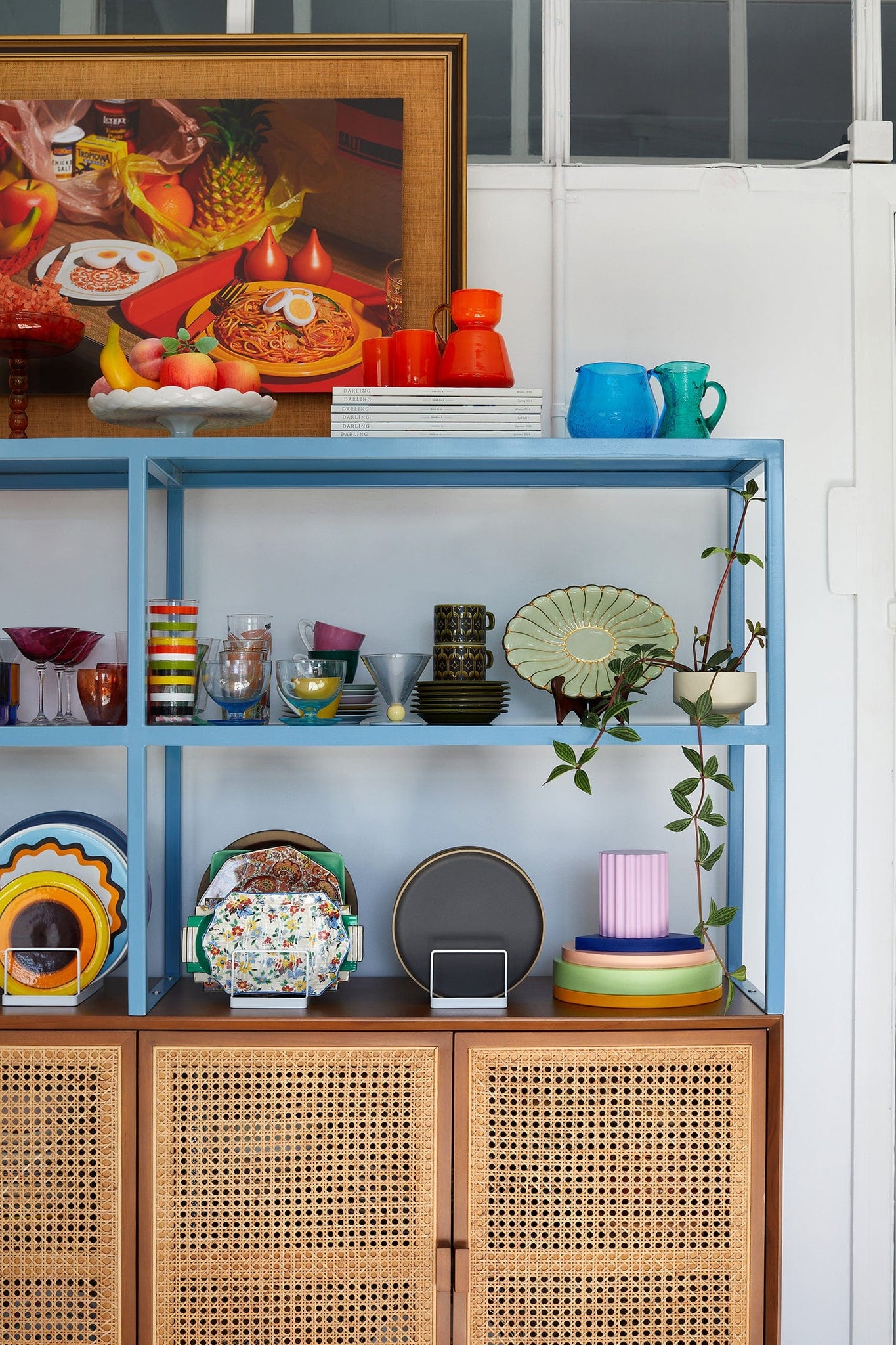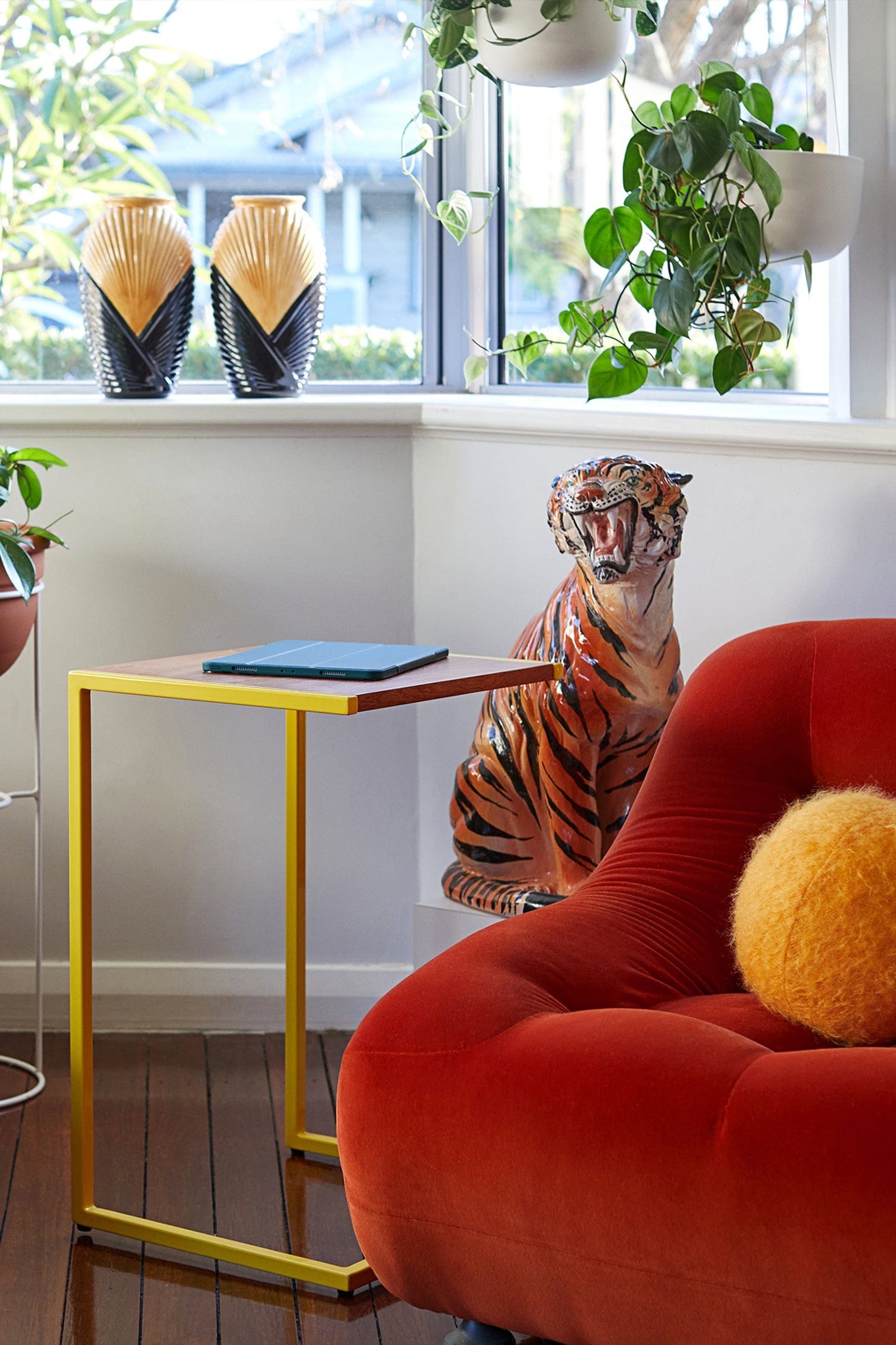 My home is colourful, cosy, inviting and eclectic, and filled with sentimental objects. We keep adding until it works. I don’t try to define my style, I have a mix of things and they just seem to fit. My partner has a collection of ephemera and it all just comes together. Most of our art was made by friends. It’s nice to support artists we’re friends with. They’re usually people I’m drawn to because of similar tastes.