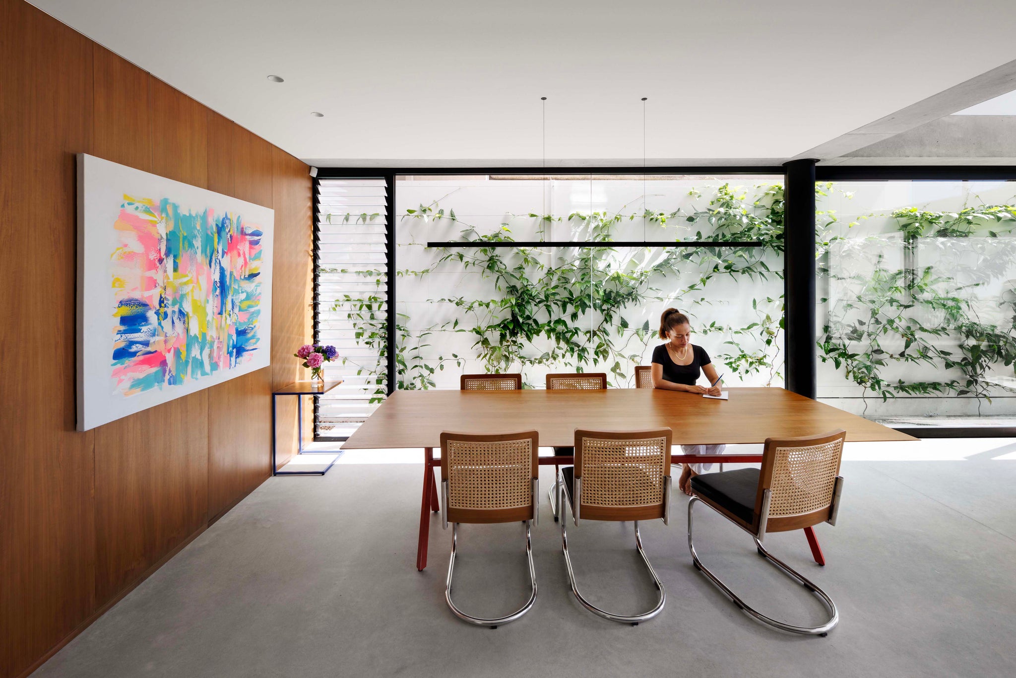 “The way the light hits the house, along with the uninterrupted views of the garden and sky, transports you to a calming space. You very much feel like you’re on holiday despite being in an inner-city suburb. After kids' sports on Saturdays, I always seem to collect more kids, so the transparency of the home also allows me to see everyone at all times.”