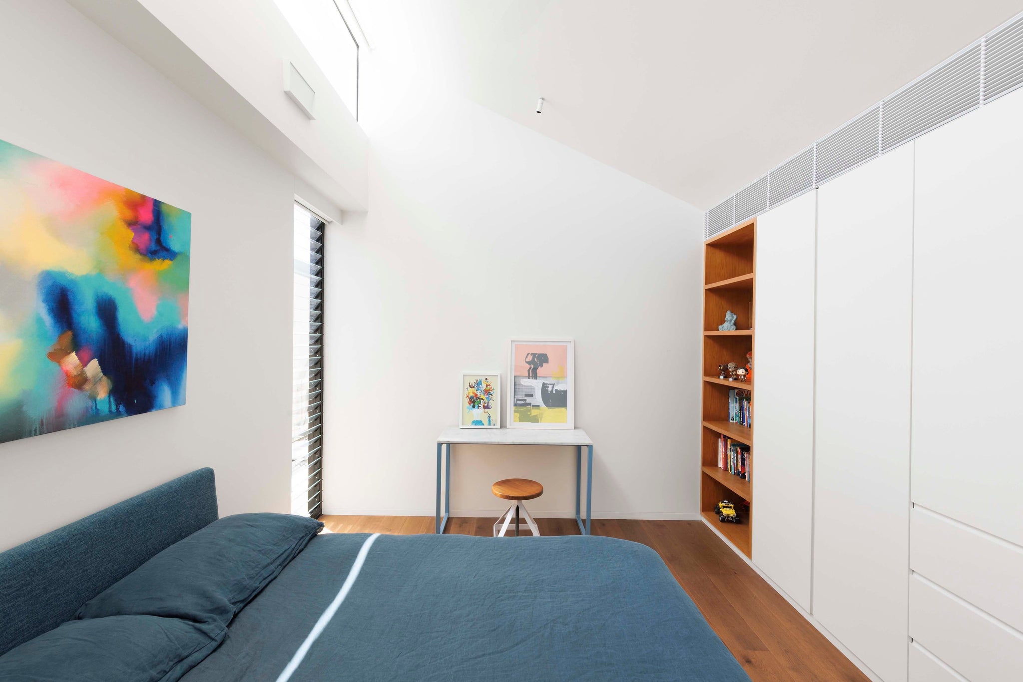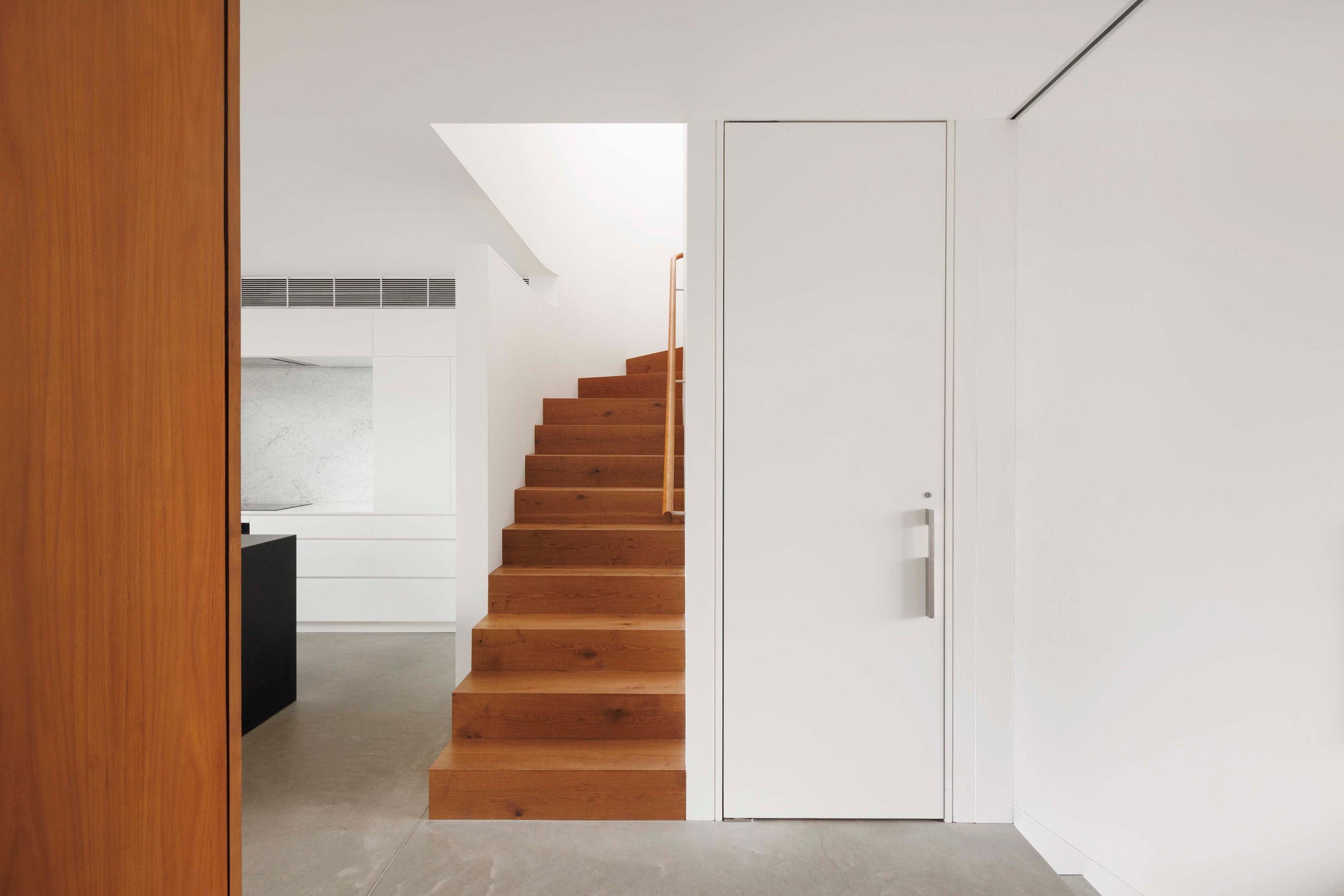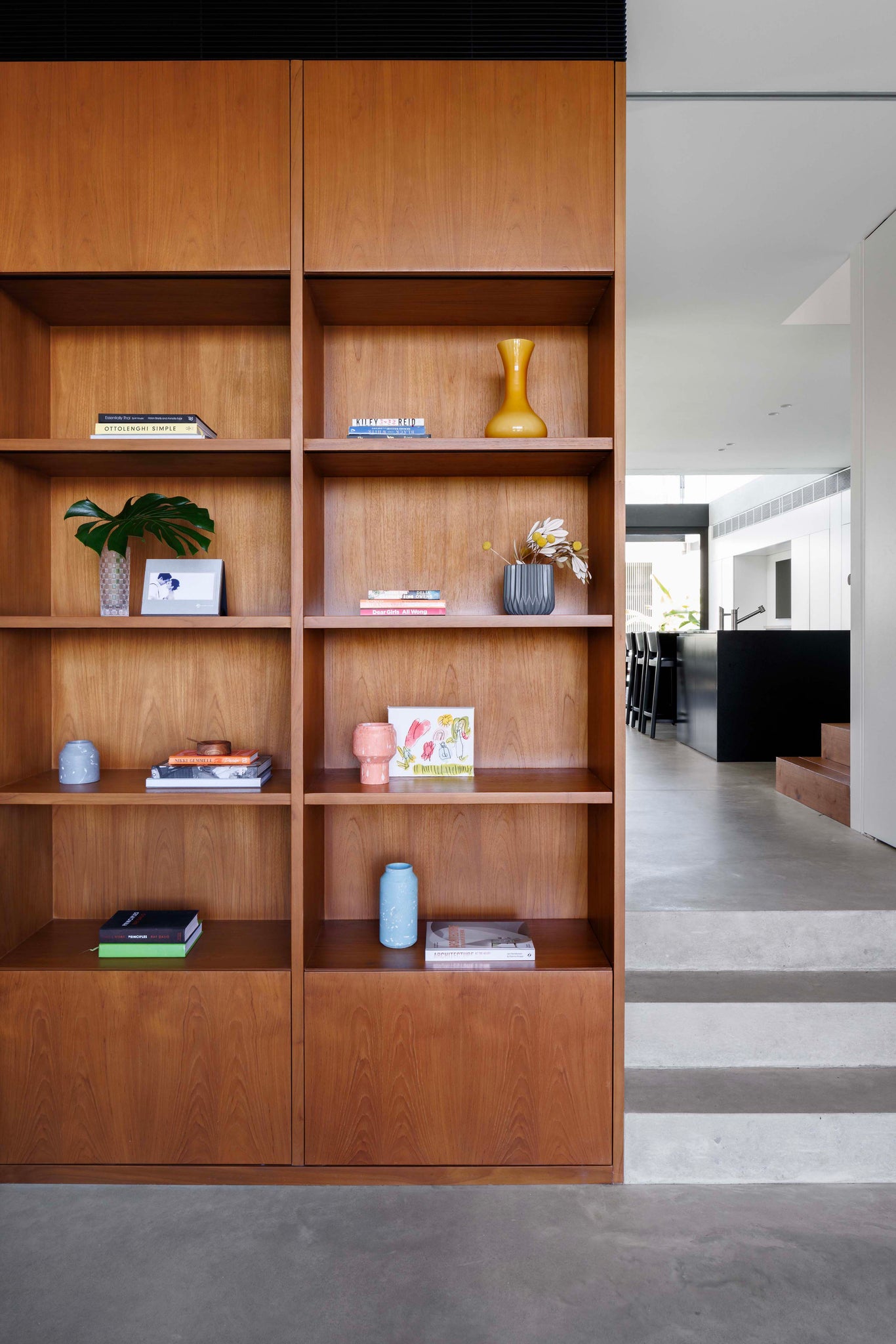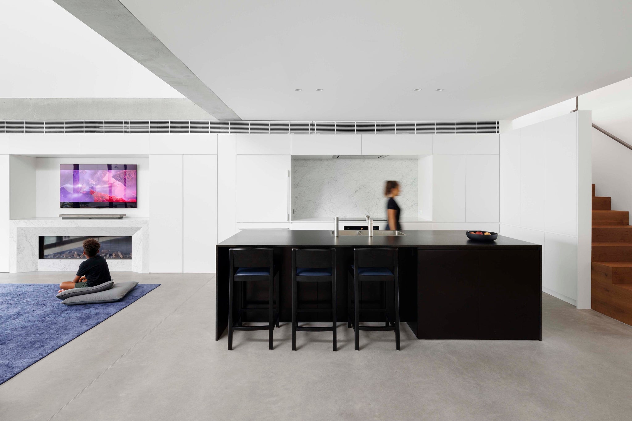 A robust shell of concrete, timber, and Carrara marble provides a hardwearing, timeless setting for furniture, metalwork, and joinery - all purpose-built for the home by Caroline and the REDDIE team. Abundant concealed storage catches everyday clutter, enabling the active family to live an easy minimalist lifestyle while fulfilling the brief to make full use of every room in the house.