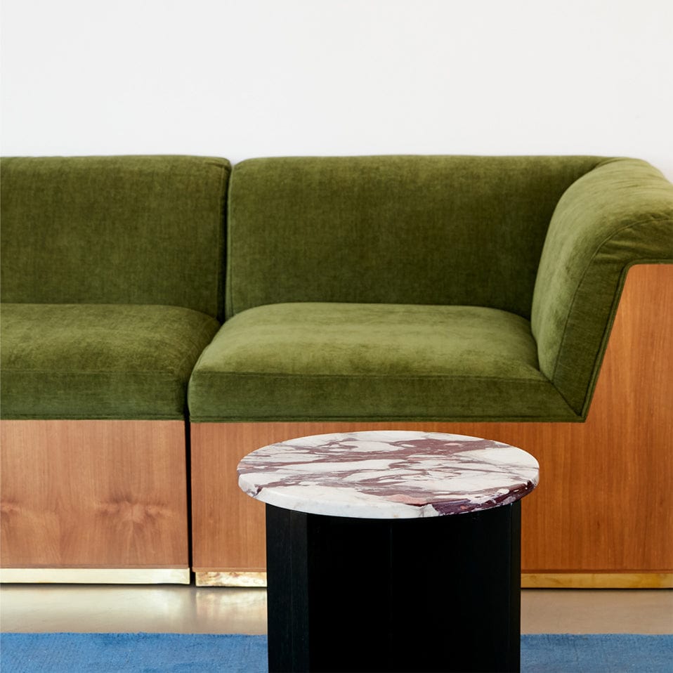 Designed with a wood veneer base detailed with solid brass and topped off with a plush fabric cushion available in 5 colours. The monolithic structures are each designed to sit independently or as a group. Both corner pieces can be left or right-hand facing and the middle piece can join any two pieces together - letting you create the perfect setting to suit you and your space.