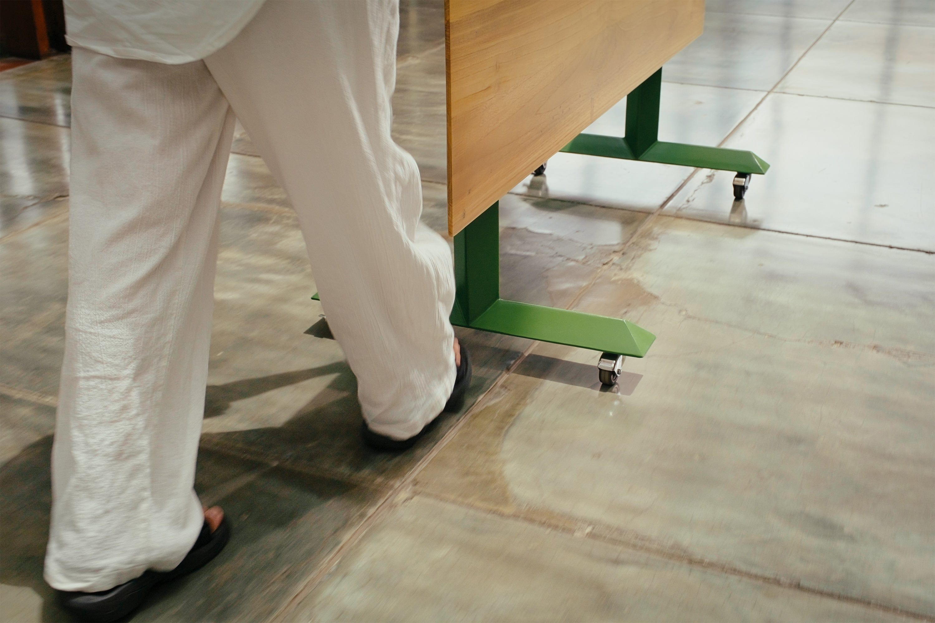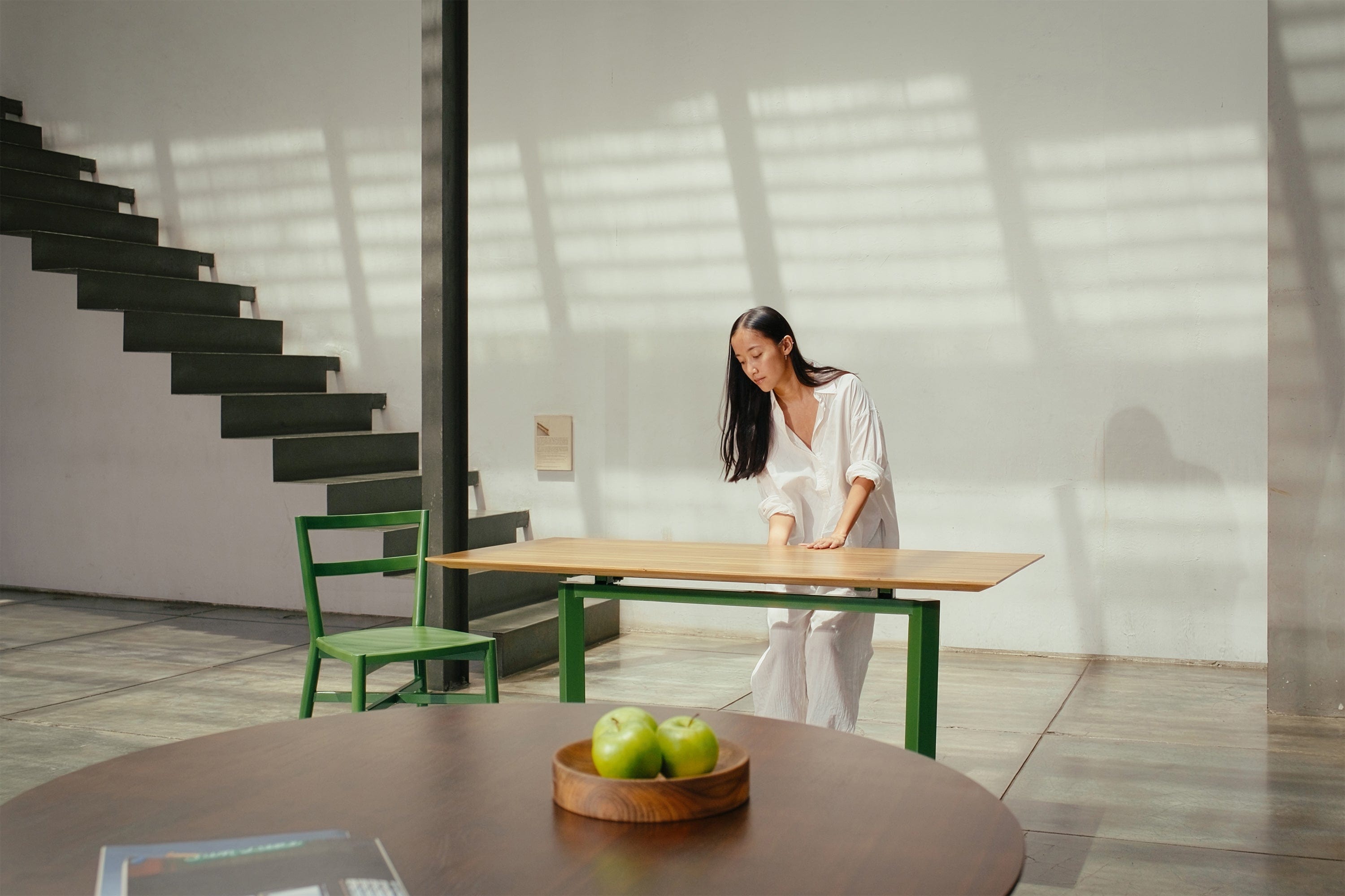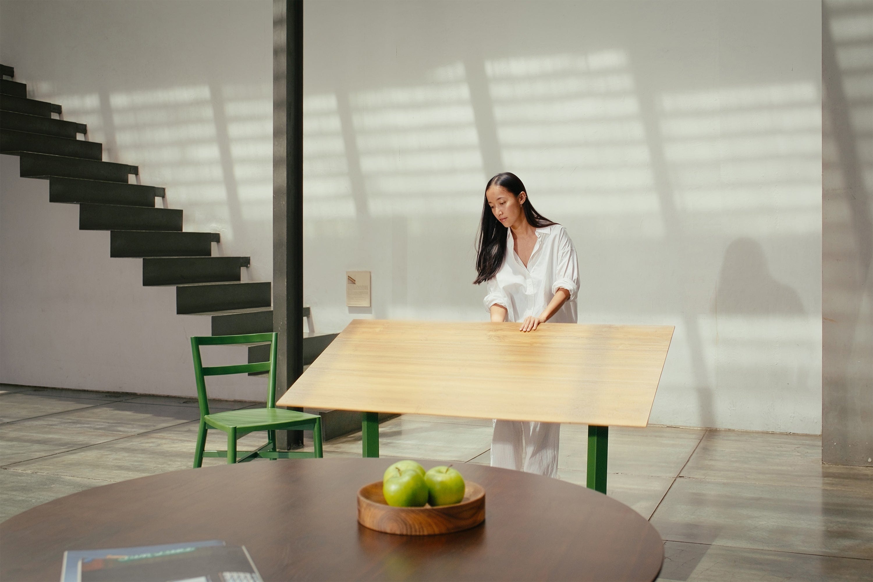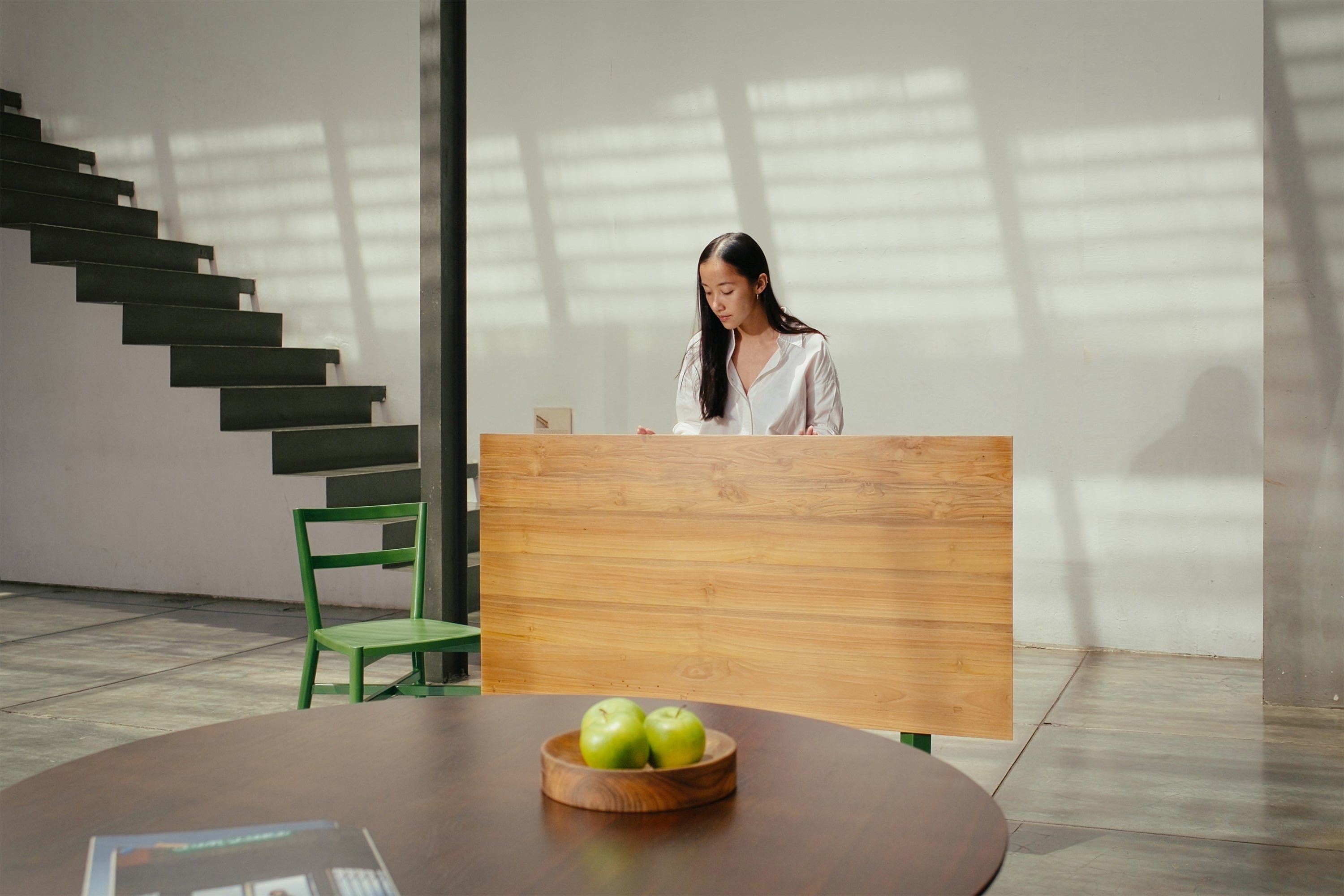 I’m Andi, the flip-top table that brings a touch of modern functionality to your space. Angular yet slimline, I’m made of solid reclaimed teak wood with a clever flip mechanism that lets me slide into any area. Whether you need me for a quick meeting or as a flexible work surface, I’m here to adapt to your needs with a unique design that stands out in any room.