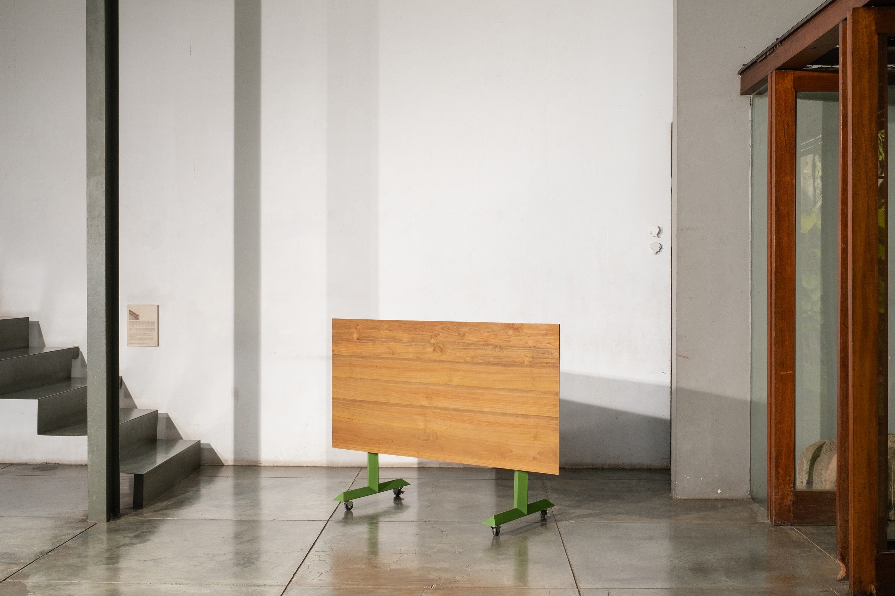 reddie-raw Folding Table 150L x 75D x 75H *cm / Solid Reclaimed Wood Teak~Oak / Metal~Green Andi Flip Top Table