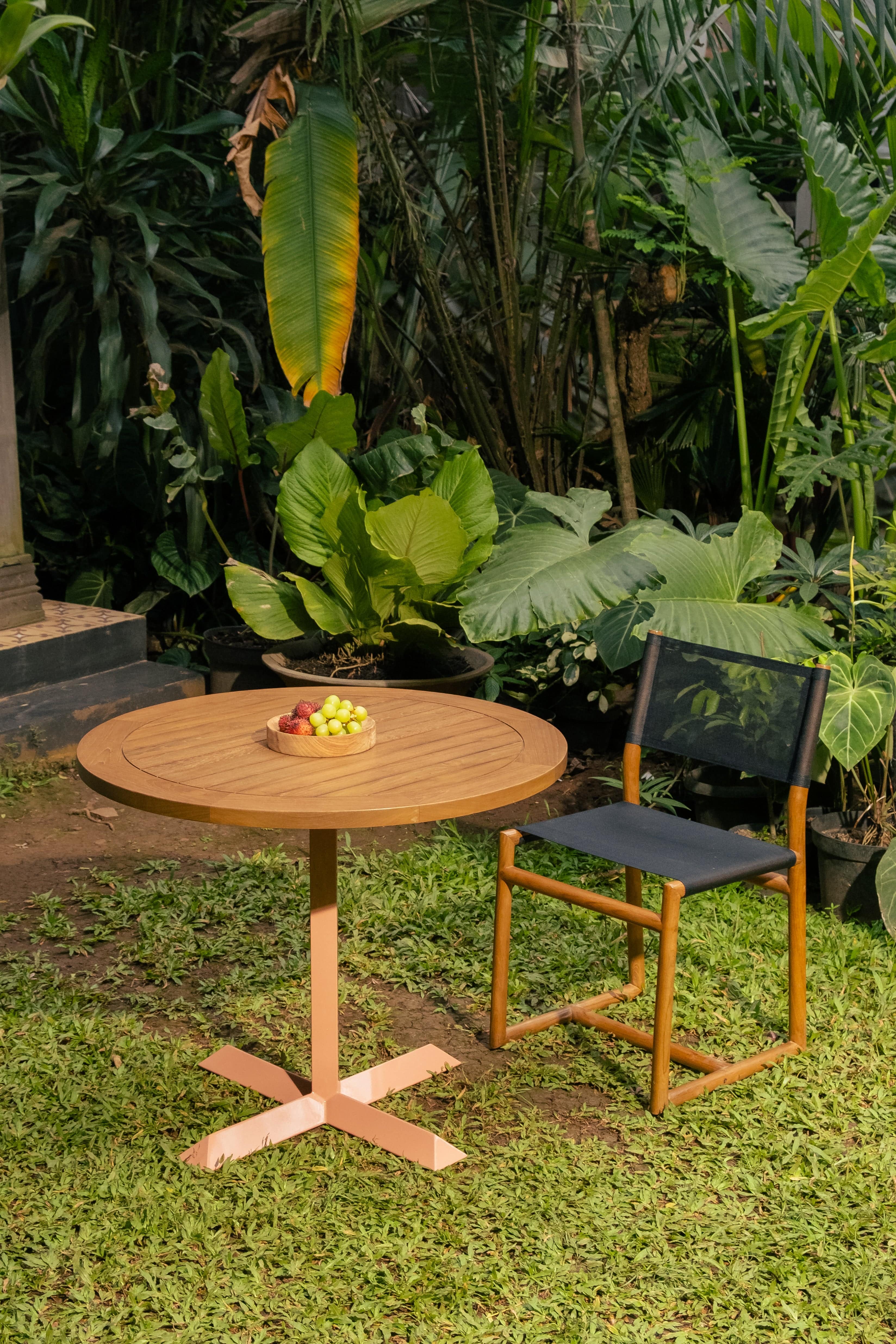 I'm Andi, the outdoor table that brings both style and function to your space. With my slimline design, sleek pedestal stem, and distinctive triangular extruded base, I stand out in any outdoor setting. My tabletop is crafted from premium reclaimed solid teak, offering both durability and beauty. Lightweight and easy to move, I’m also sturdy enough to comfortably support your dining experience. Whether lined up in a row or seating four people comfortably, I’m perfect for those outdoor gathering spaces where you want both elegance and practicality.