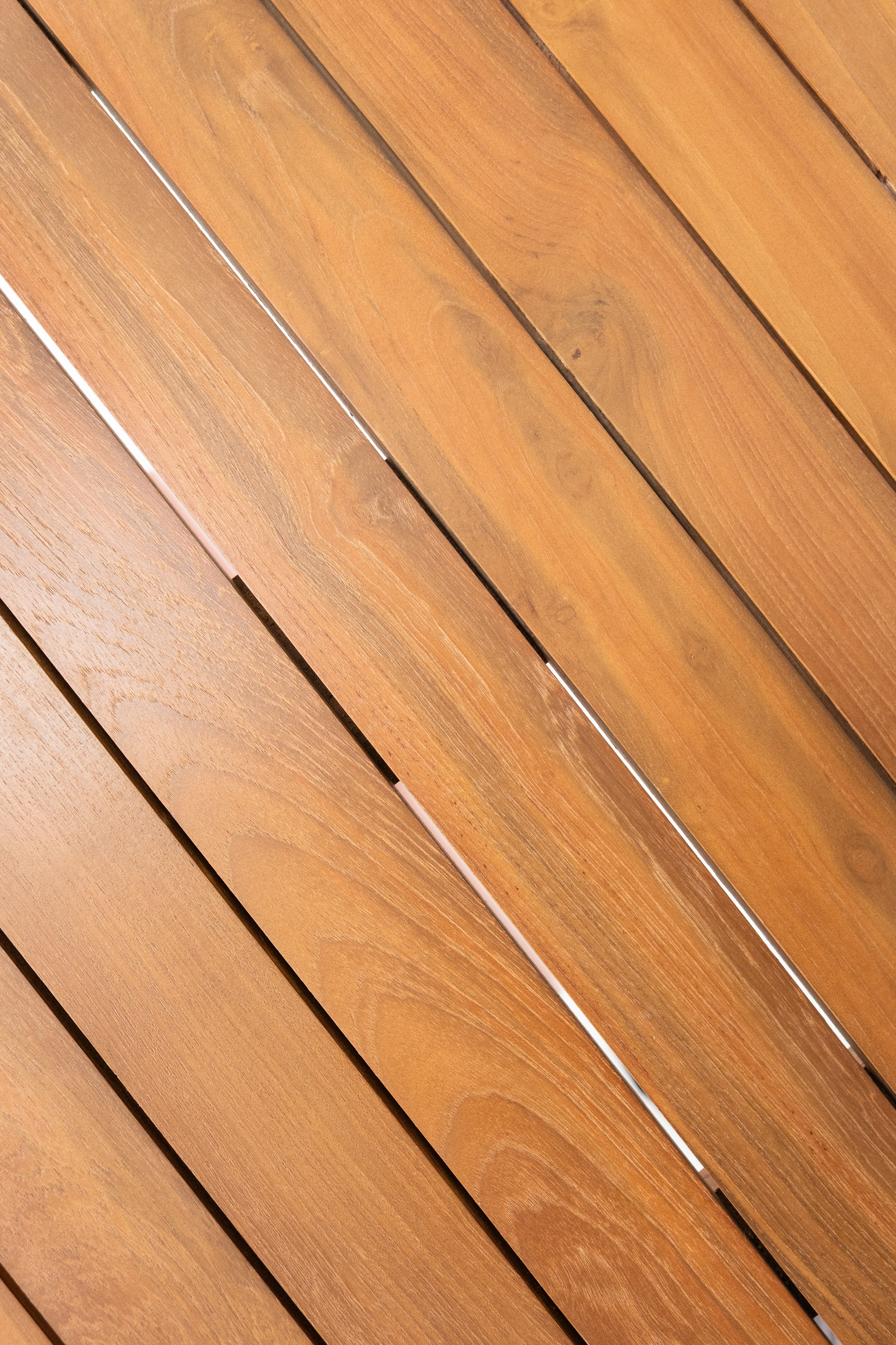 Outdoor characteristics: teak wood outdoors naturally weathers to a silver-grey patina over time. Certain sections will weather at different speeds depending on exposure levels to direct sunlight, rain pooling, extreme temperatures, humidity and dry air. Surface cracks will appear and there will be movement as it expands and contracts. Marks and blotches may appear when wet before drying.