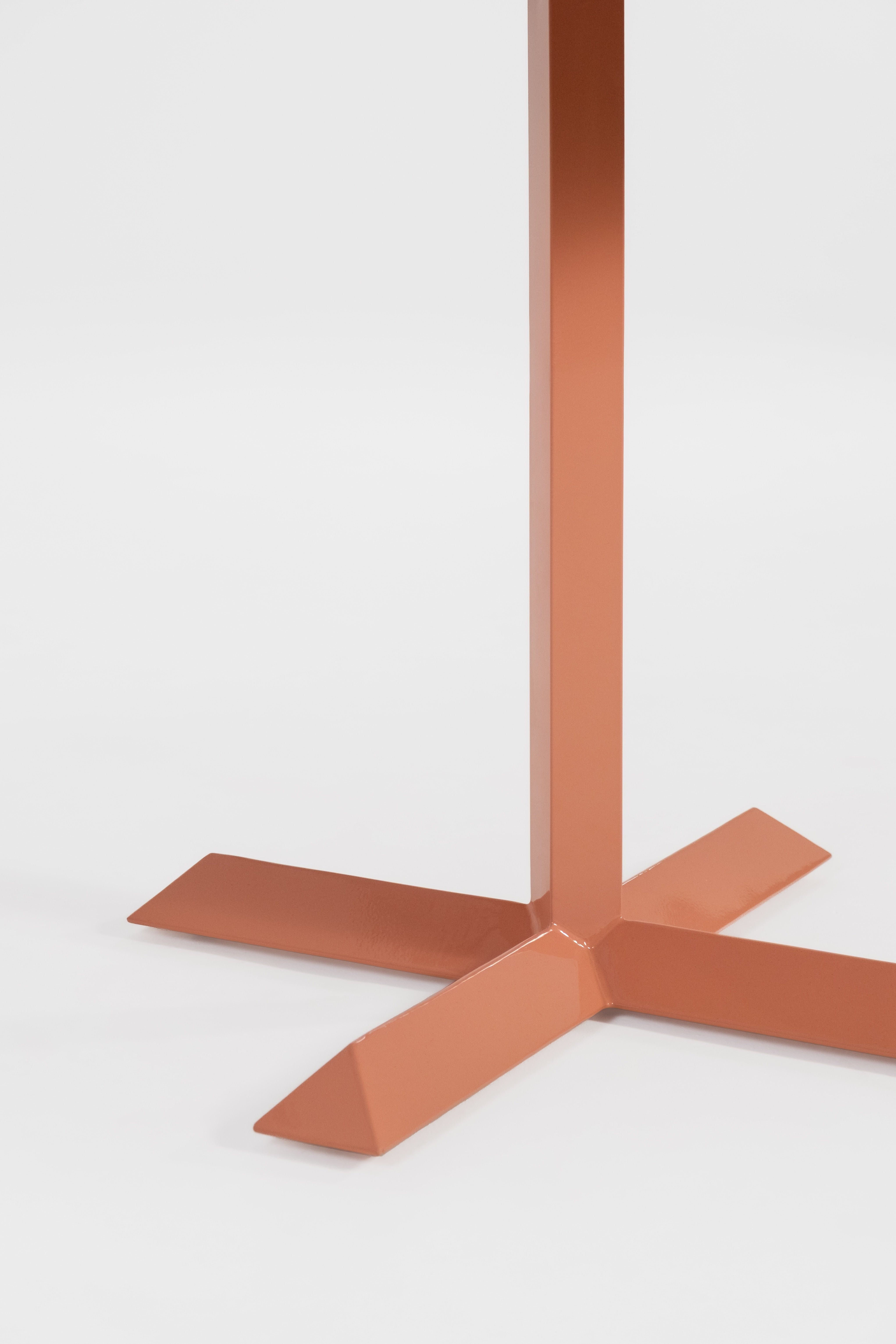 To prevent from outdoor rusting all of our outdoor tables are made from 201 stainless steel powder-coated. (*bob table base plate galvanised steel powder-coated) Our powdercoats have UV stabilisers but darker colours can fade in direct sunlight.