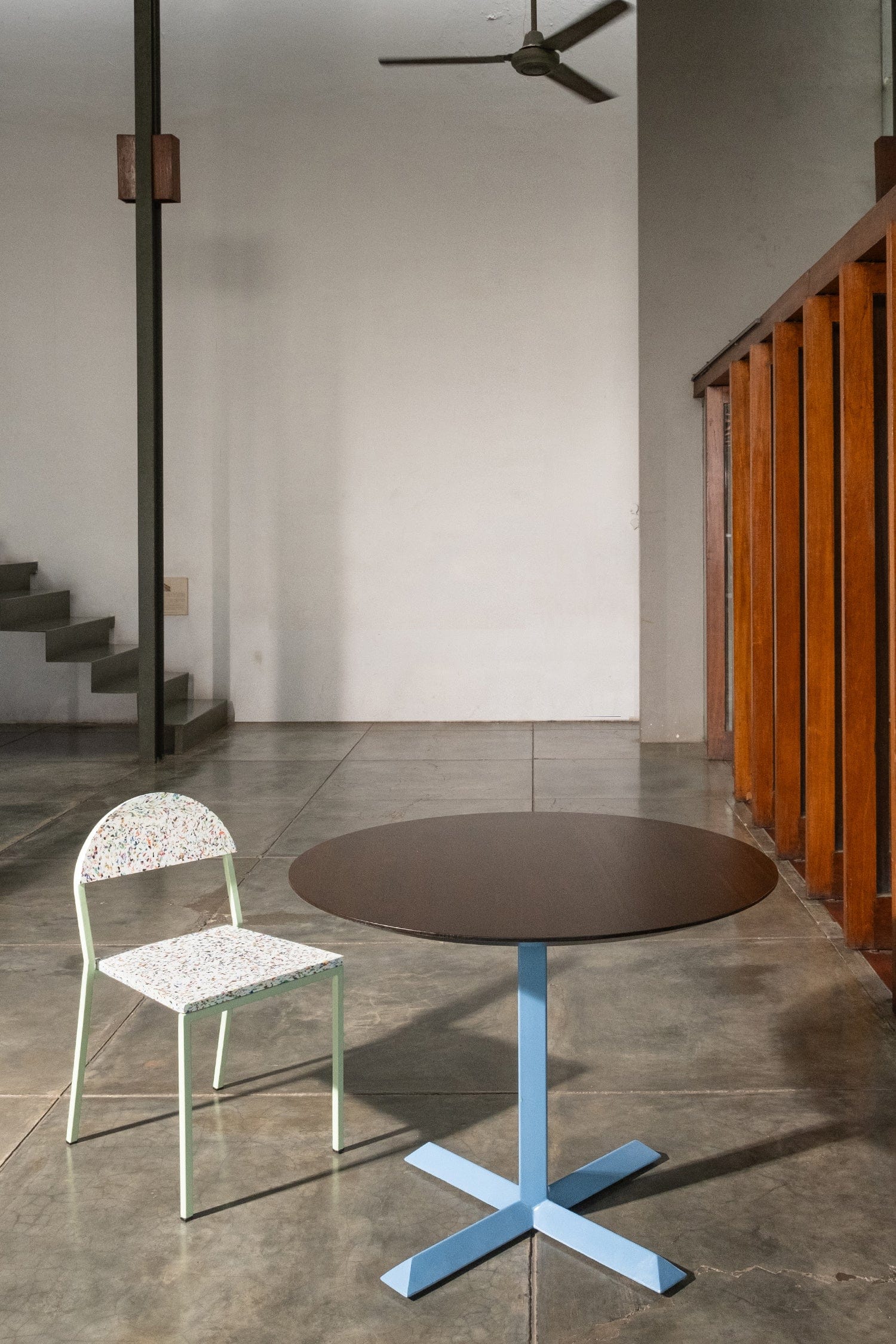reddie-raw round 100dia x 75H *cm / Solid Reclaimed Wood Teak~Natural / Metal~Grey Andi Pedestal Table