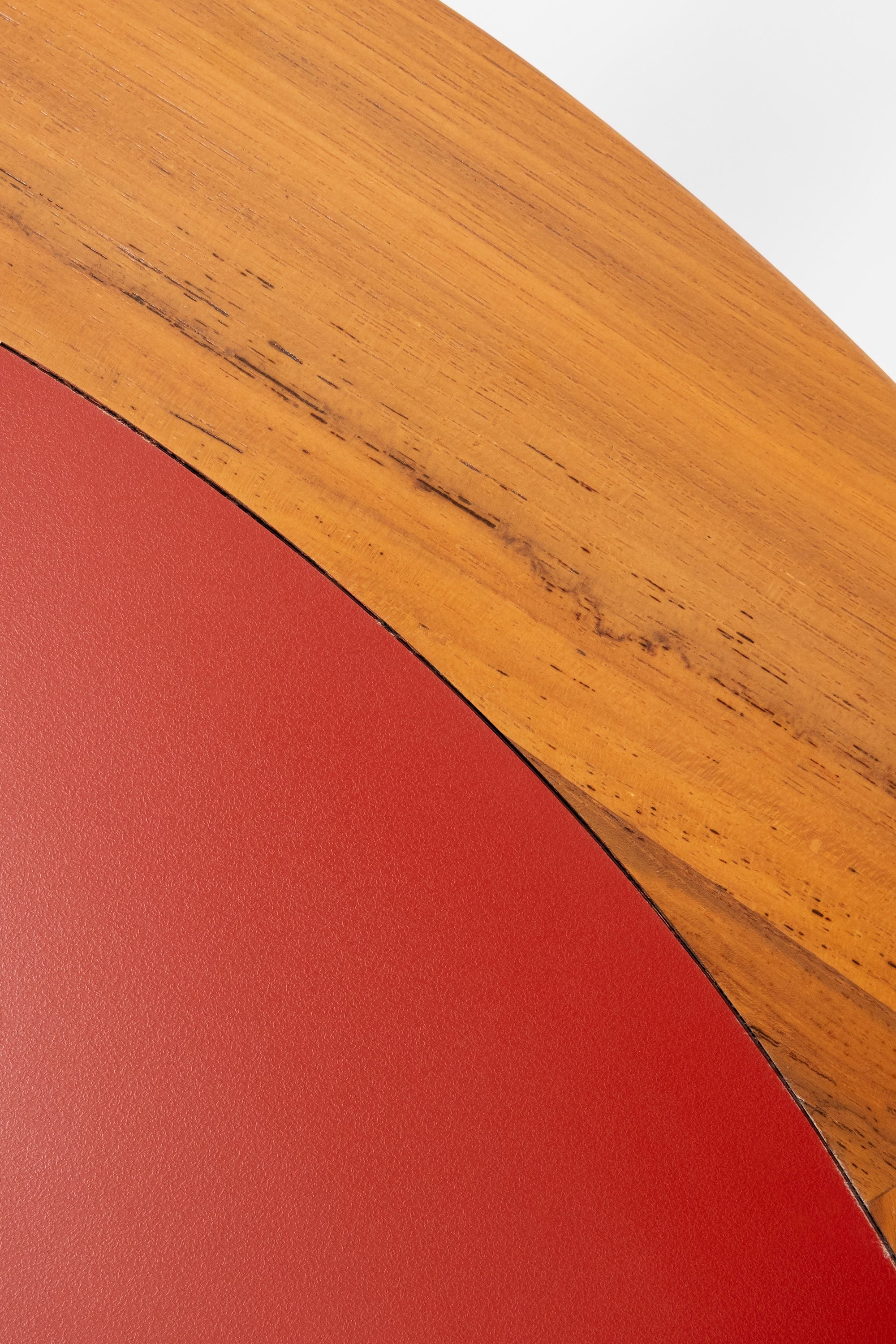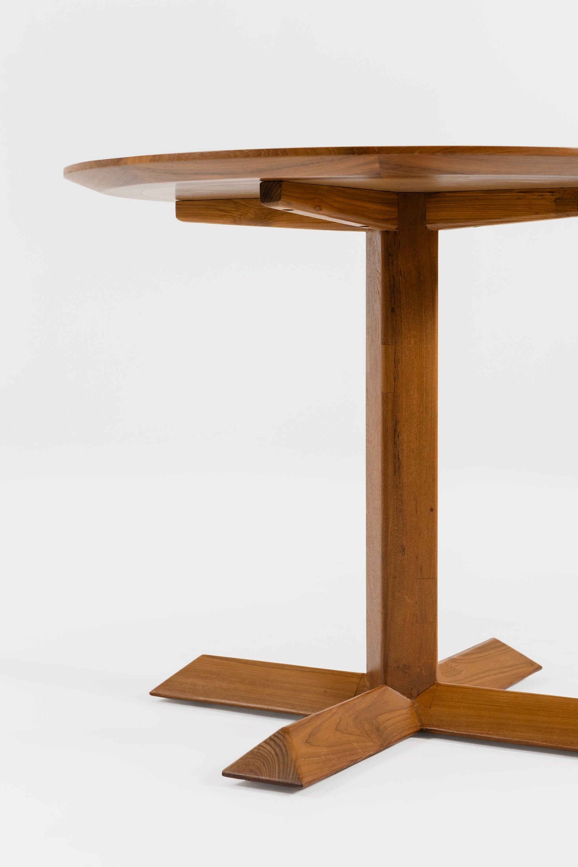 I'm Andi, and I'm all about sleek lines and smart design. My strong, geometric pedestal stem and base are crafted from solid reclaimed wood, offering both elegance and stability. My tabletop is also made from beautiful, reclaimed solid teak, and you can even opt for a smooth laminate inset. The sharp 'shark nose' edge detail makes my top appear incredibly thin and light, creating the illusion that it floats effortlessly above my sturdy base.