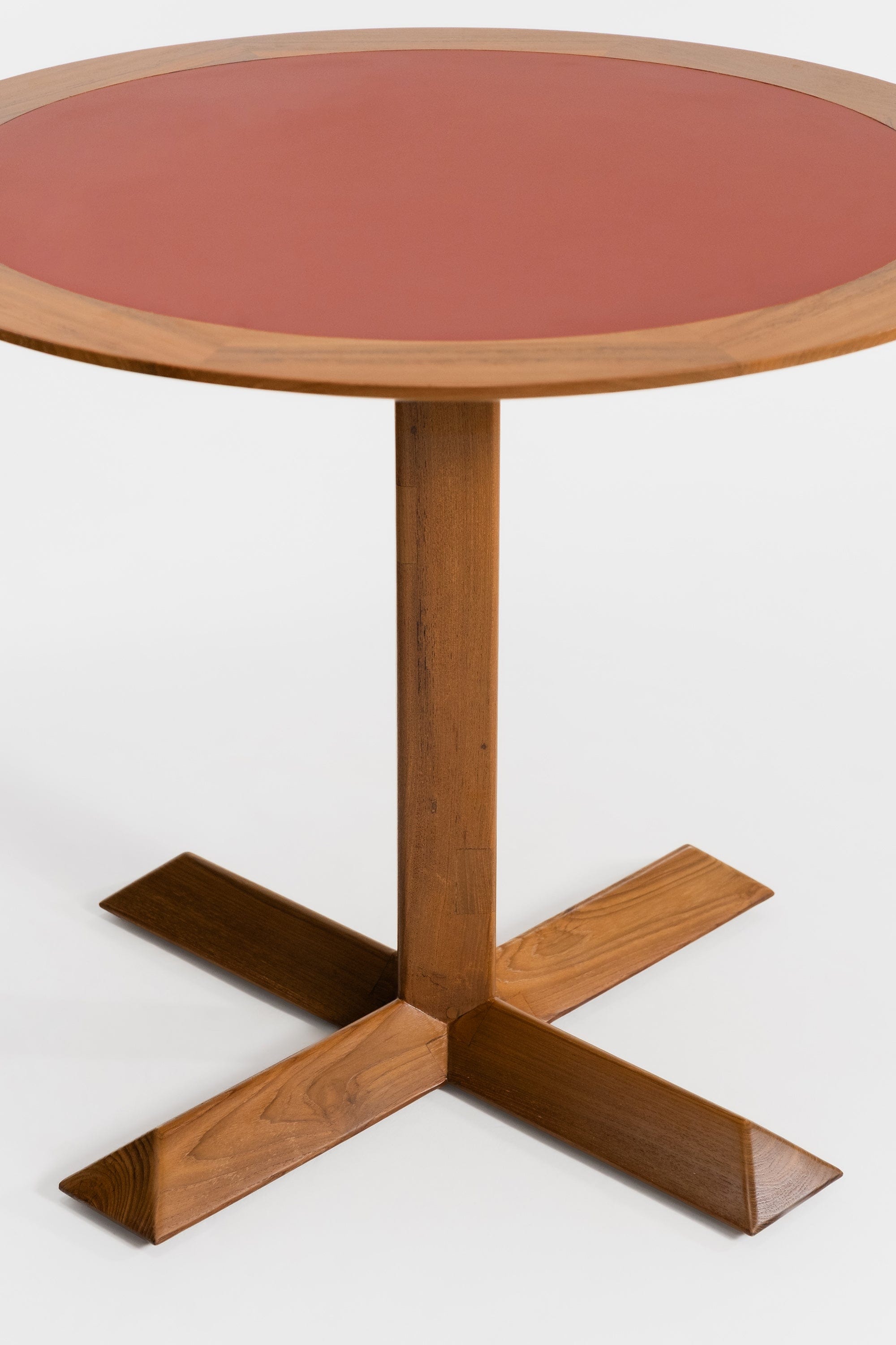 reddie-raw round 60dia x 75H *cm / Laminate with Solid Reclaimed Teak Wood Edge~Spanish brown / Solid Reclaimed Teak Wood~Natural Andi Pedestal Table Wood