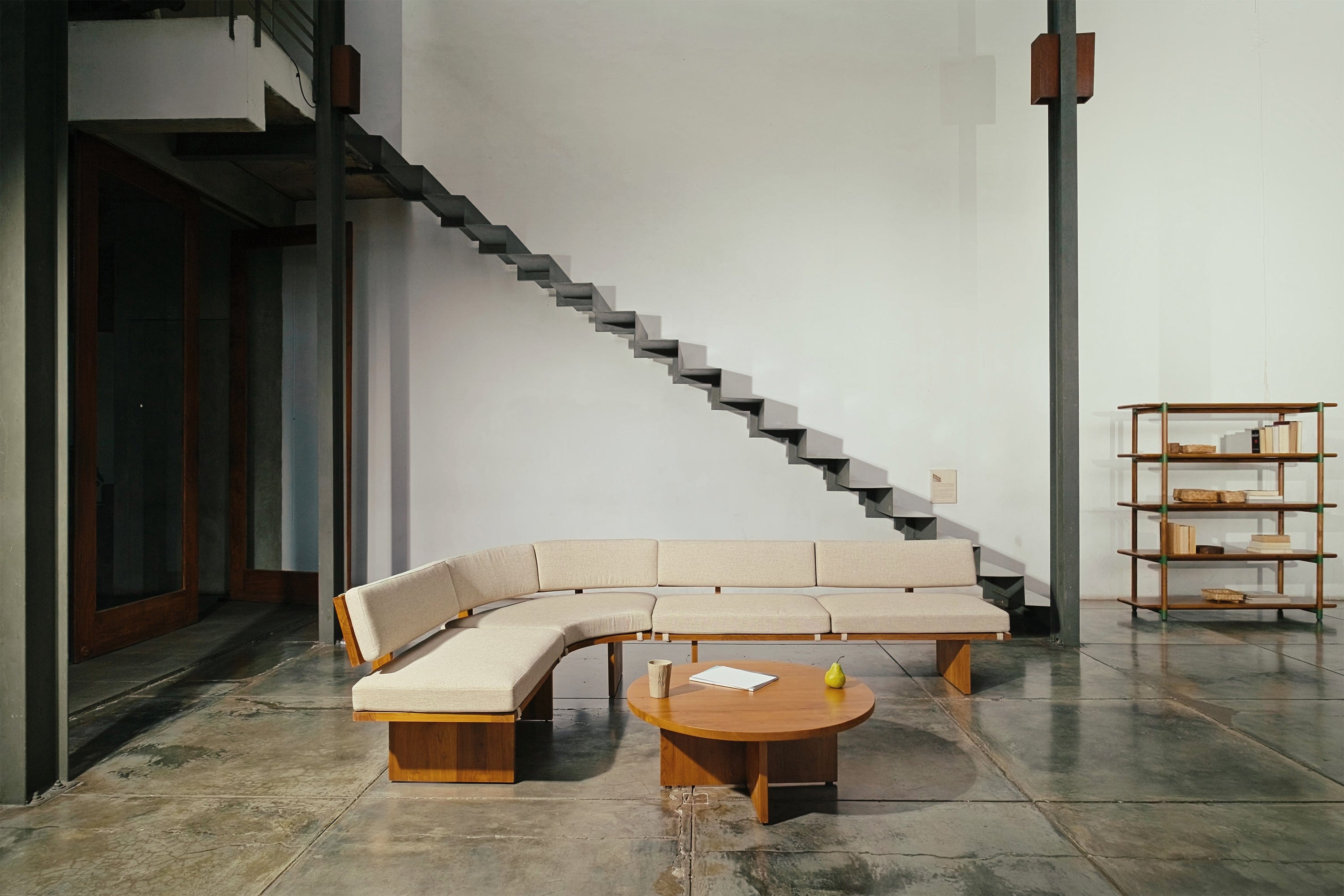 I’m Bob Lounge Modular, a sleek and versatile daybed sofa. With my minimal lines, I seamlessly fit into a variety of spaces, making me the perfect chameleon. My reclaimed solid teak base and sturdy legs provide a strong foundation, while my removable fabric cushions offer comfort and style. I can be used as individual pieces or linked together in endless configurations, perfect for your collaborative spaces.