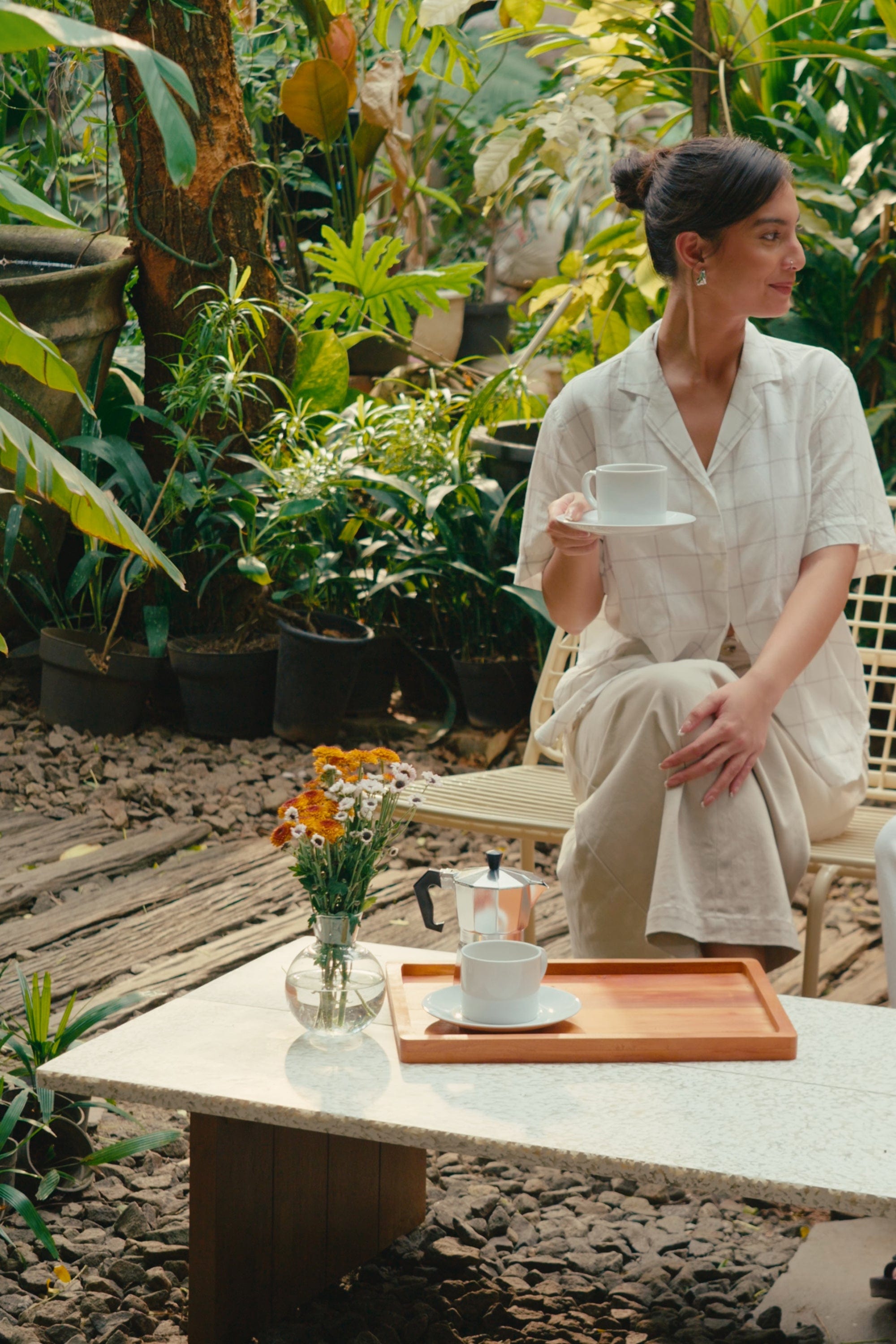 Sustainable, sculptural, and seriously good-looking – I’m your conscious coffee table with a bit of sparkle. Indoors or out, I’m always ready to make a statement.