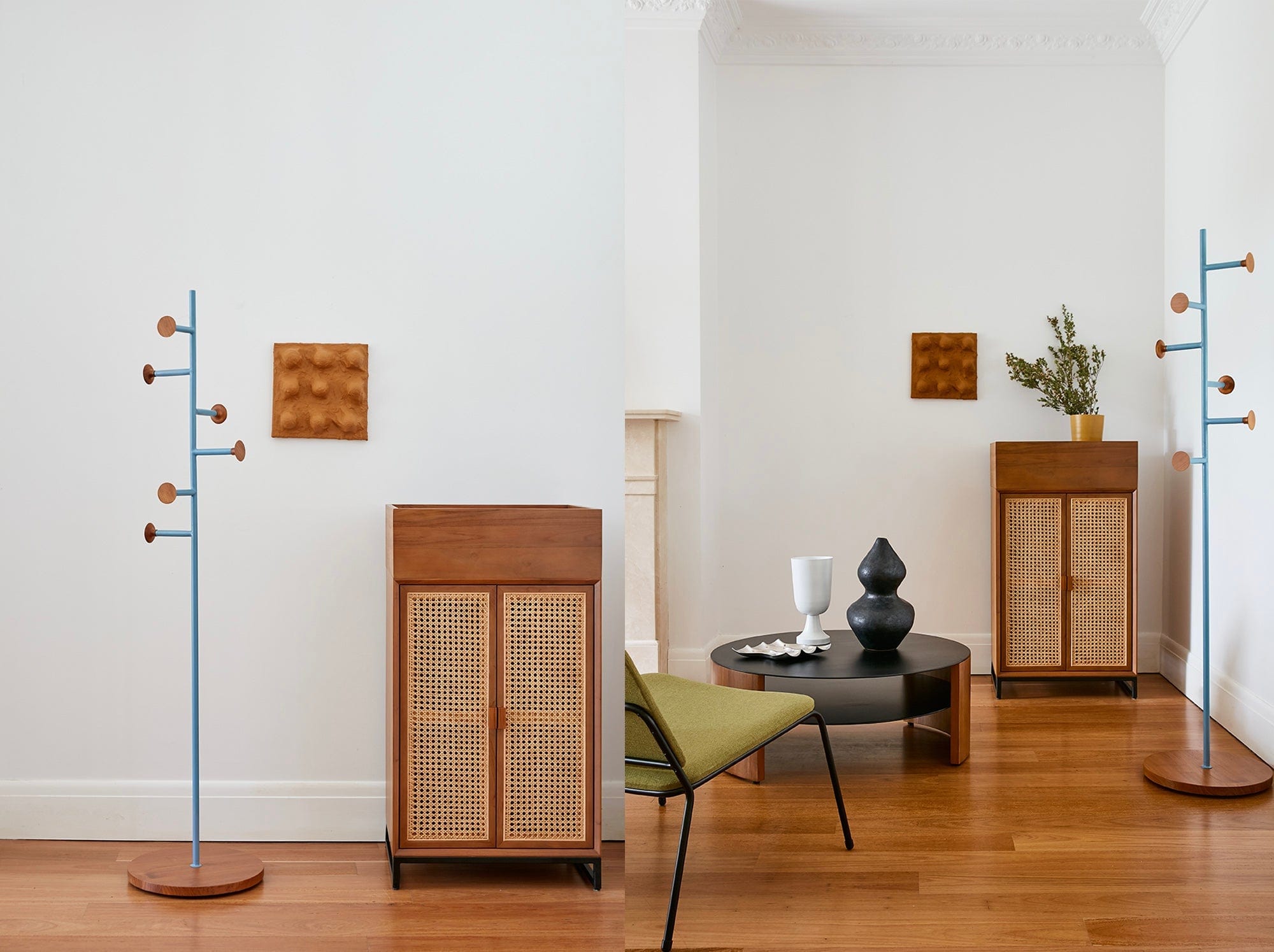 reddie-raw coat stand 40dia x 173H *cm / Wood Teak~Natural / Metal~Blue Bob Coat Stand
