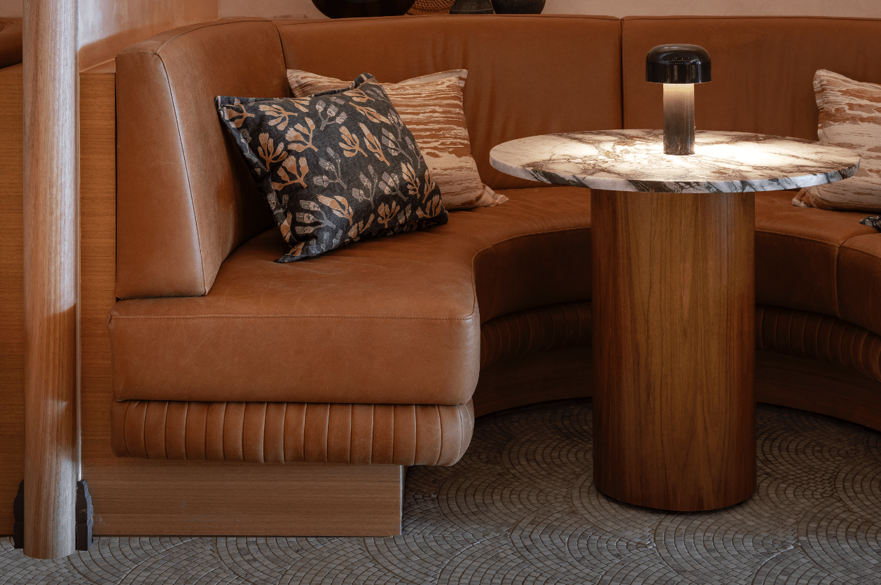 I’m Dora, your perfect choice if simple yet practical is your style. My single monolithic base has a perfectly proportioned drum shape that provides ample legroom and a clean silhouette. With a range of stone options available, you’re sure to find the ideal combo that complements your space and adds an elegant, timeless look.
