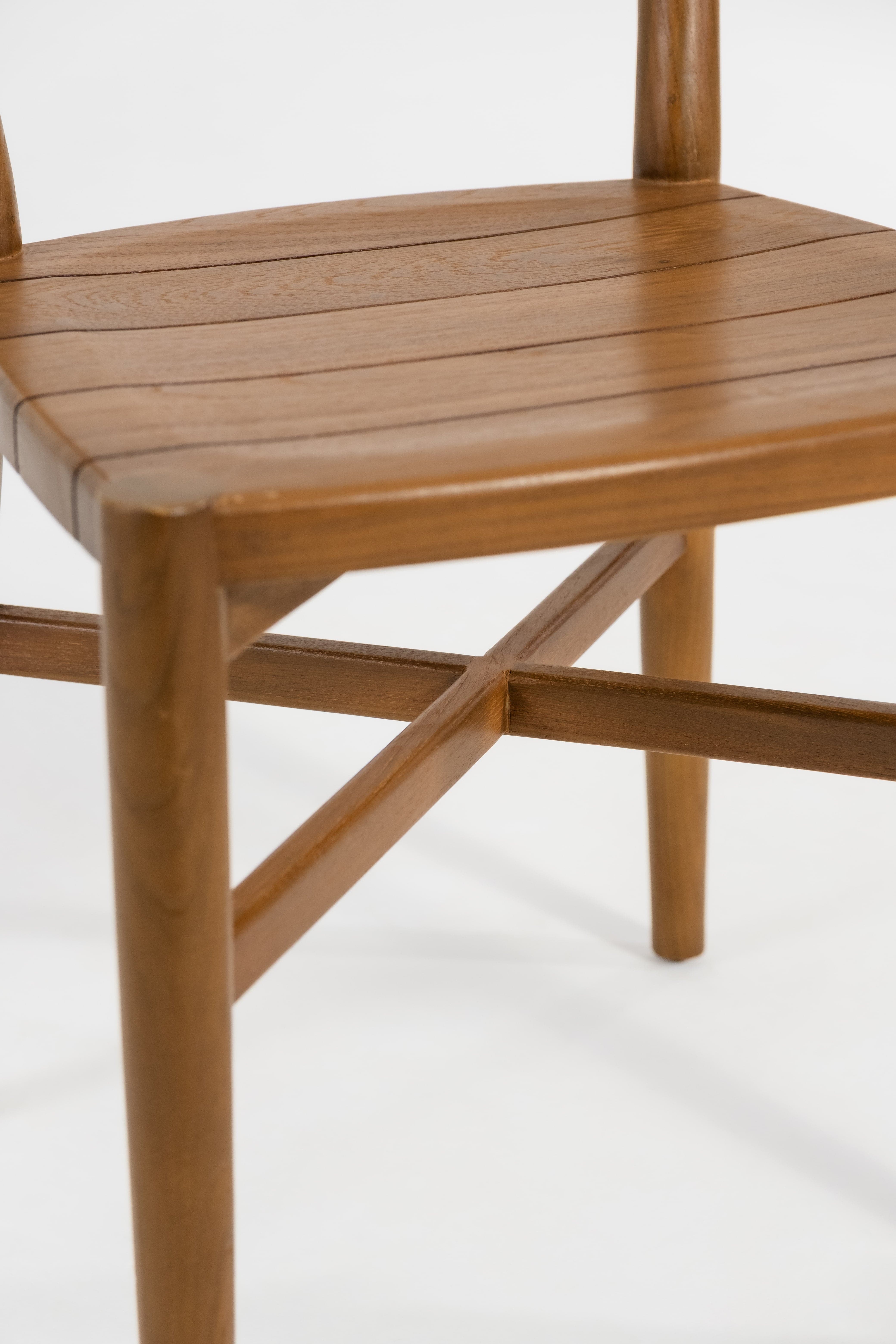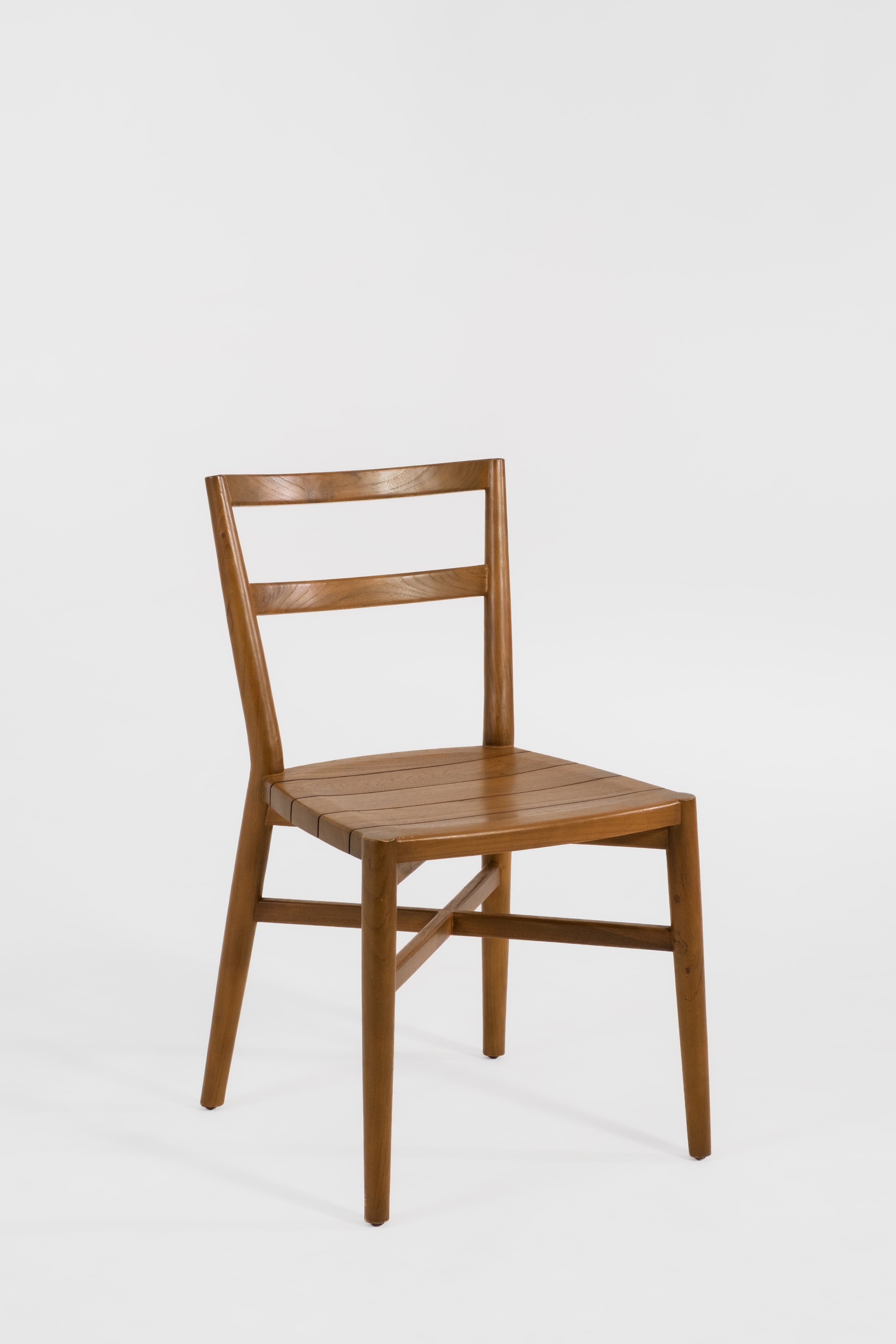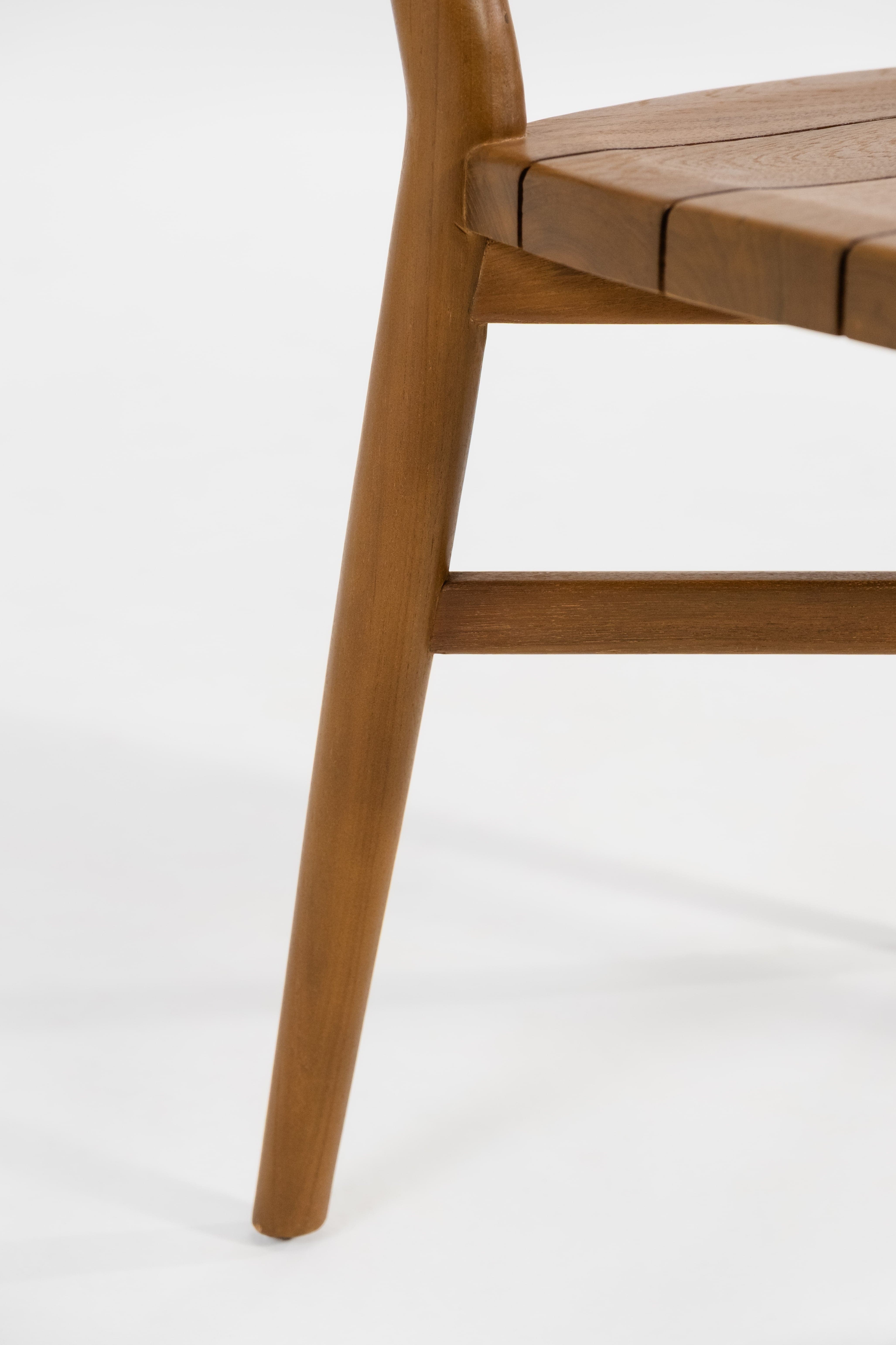I’m Jepara, the outdoor dining chair built with both style and practicality in mind. Crafted from 100% reclaimed solid teak, I offer a slim, sturdy form that fits seamlessly into smaller outdoor spaces. My double-braced legs and slender back ensure stability and comfort, making me the perfect fit for your next outdoor dining setup.