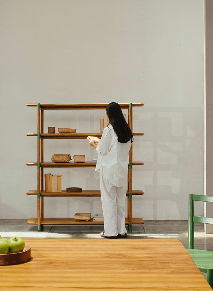 Slimline and with a touch of mid-century charm, I’m Jepara, crafted from 100% solid reclaimed teak wood. I’m designed to elegantly hold your books, collectibles, and maybe even your wine bottle. Tailor me top to bottom, and I’ll seamlessly fit into your next project with ease.
