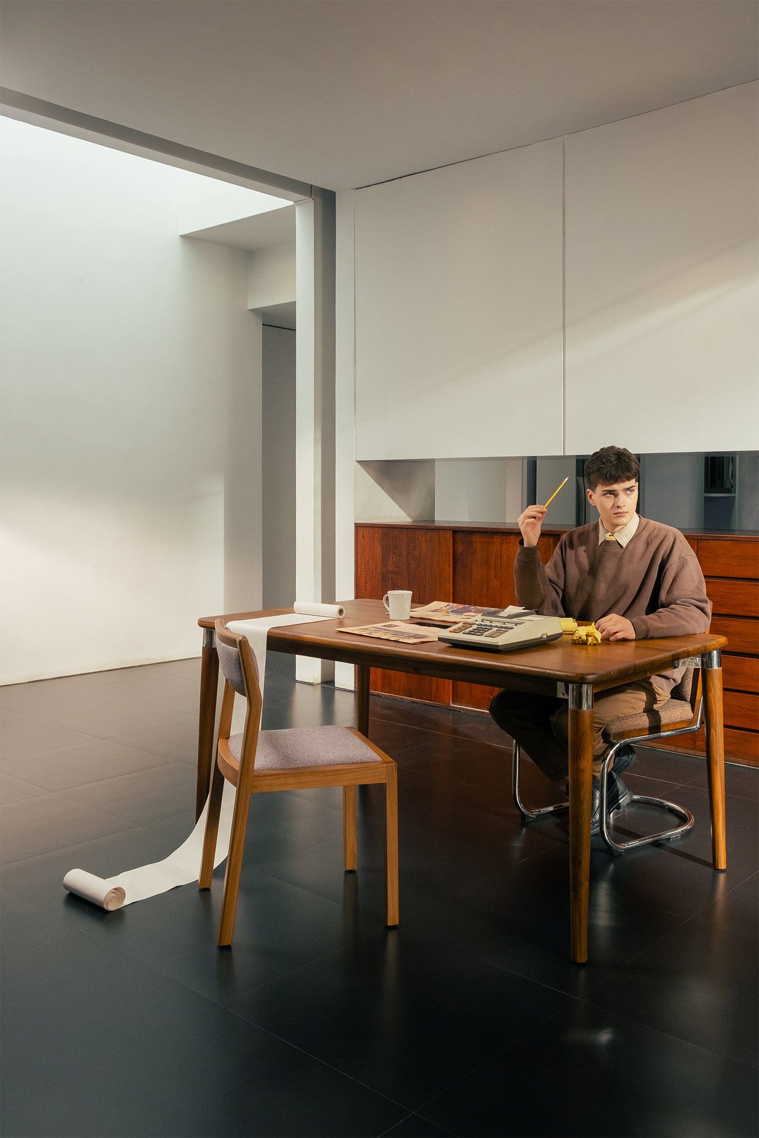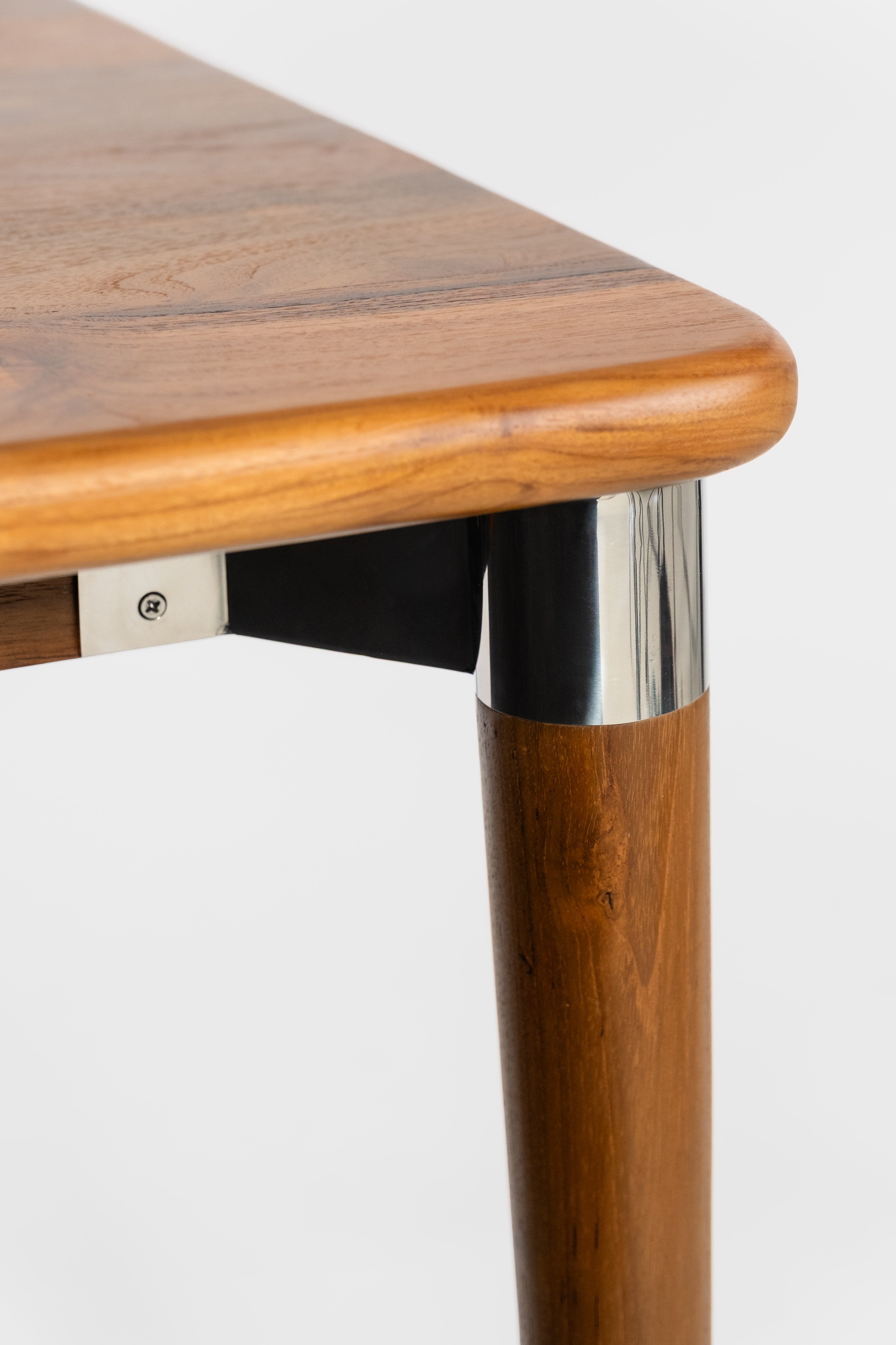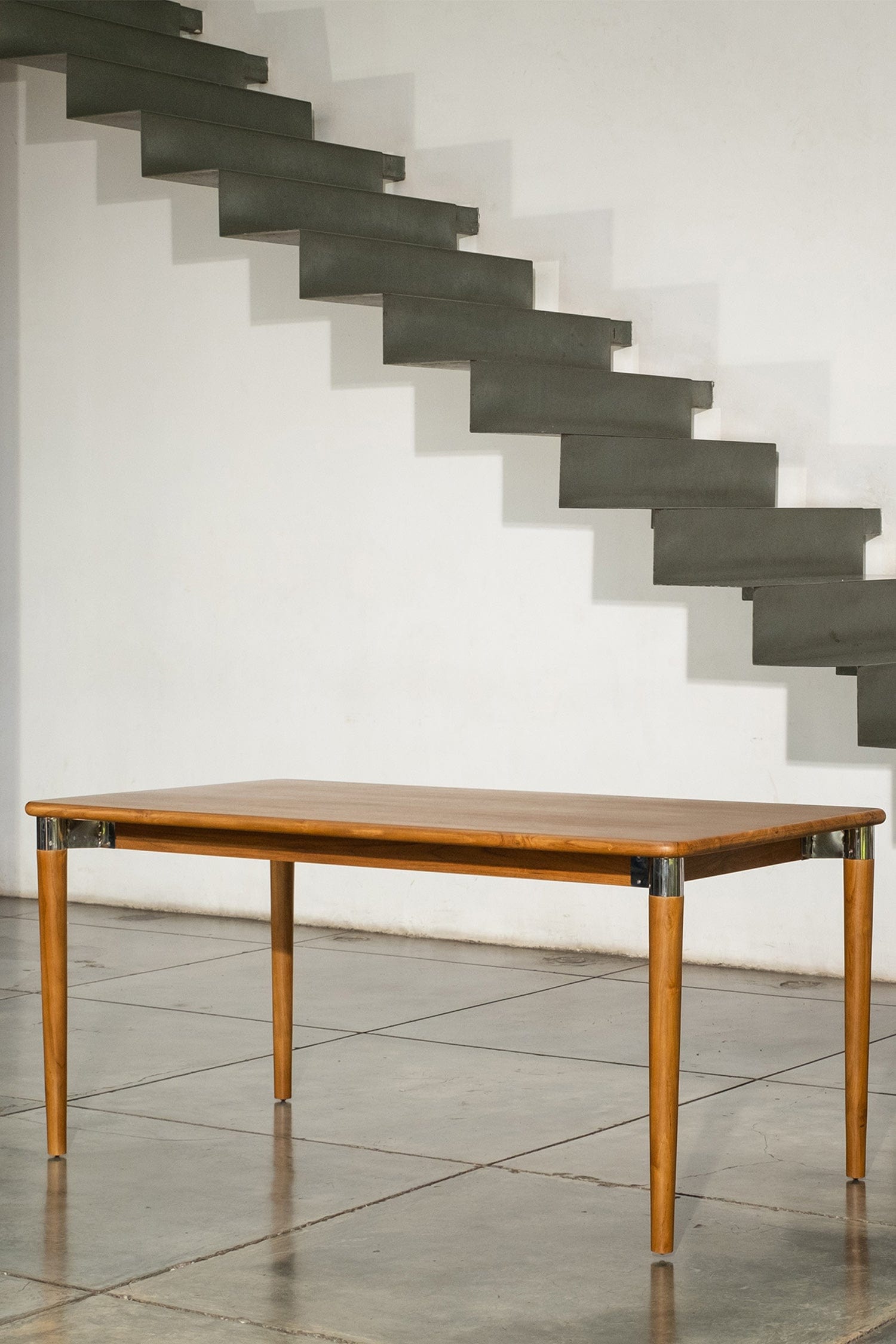 Curved, sleek, and elegant – I’m Jepara. Let me share a little secret. Originally designed to be a simple, slimline wooden table, my creators made an unexpected change: one engineer added metal braces at the top of my legs for added steadiness. That was the turning point. The result? A stunning fusion of traditional elegance and industrial chic. Customize my wood tones and corners to make me truly yours. Plus, I’m 100% solid teak wood, adding natural beauty to any space.