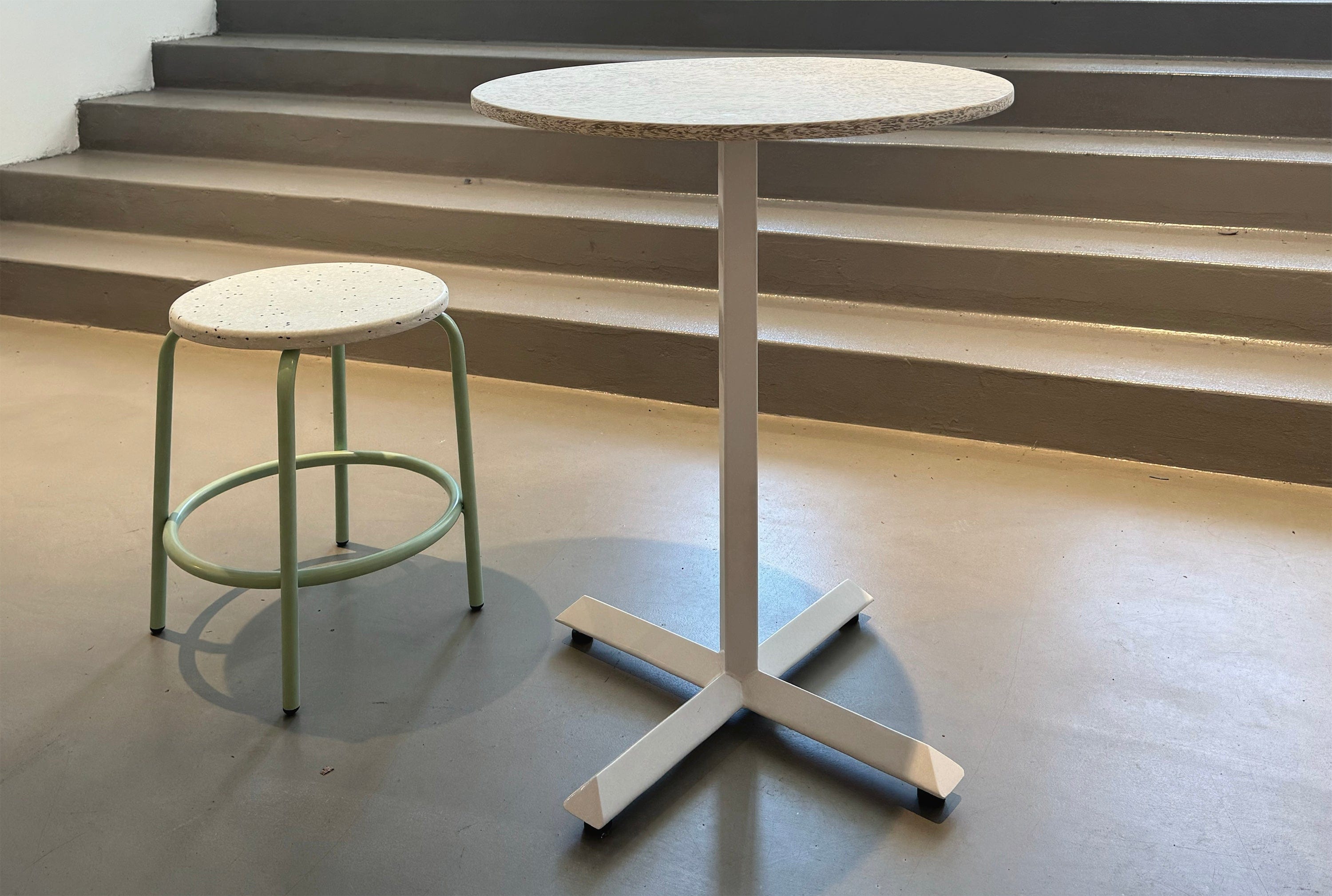 I'm Milton, the low stool with a surprising twist! I may look simple, but I feature a seat made from recycled plastic—crafted from plastic waste. A cute little stool ready to brighten up your table setting, I'm designed with both style and sustainability in mind. This stool is also BIFMA rated for high-traffic commercial environments.