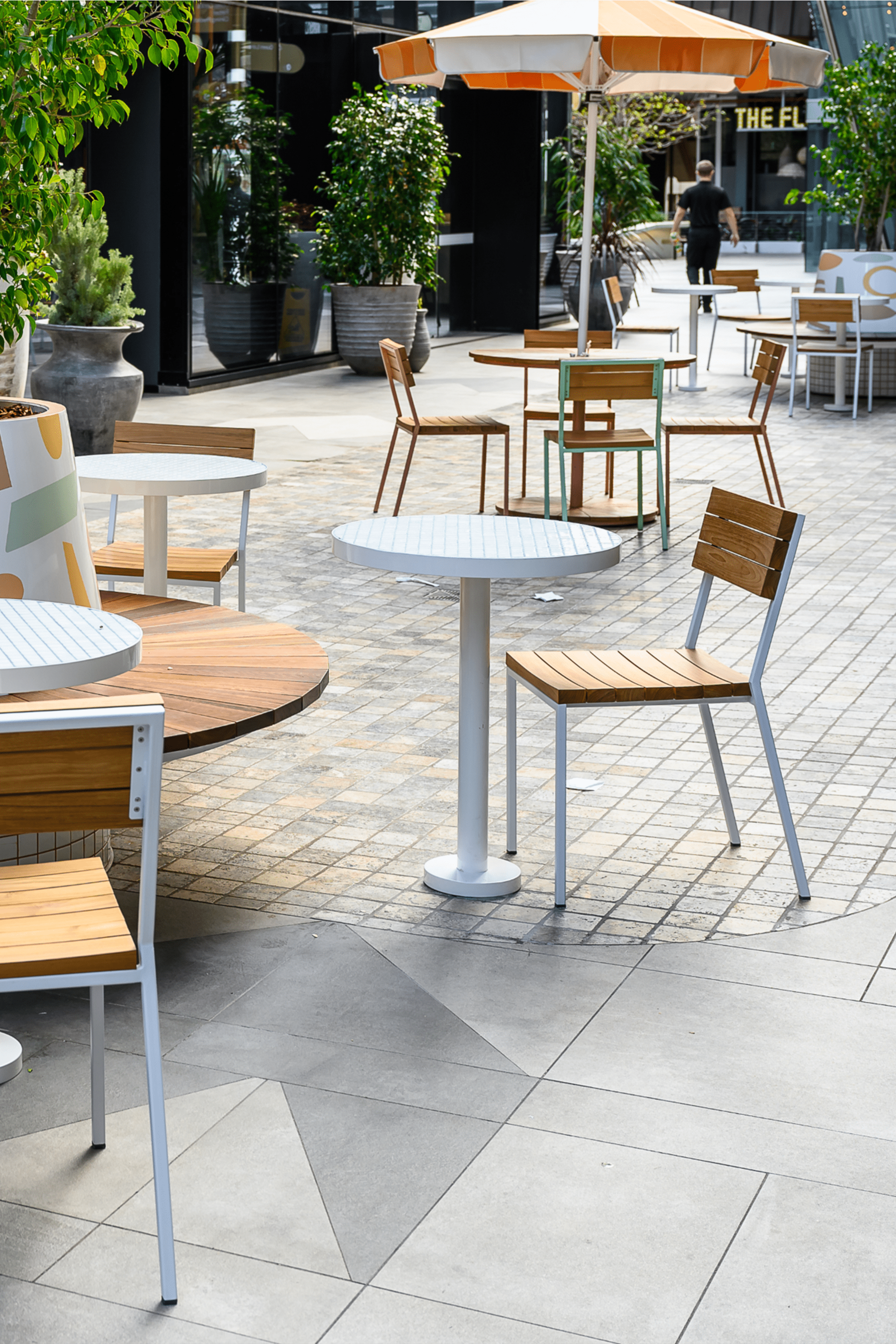 I'm Suzy, and I combine structure with stackability. Slatted solid reclaimed teak wood pairs with a powder-coated stainless steel frame, built to stack up to four high. Elegant, functional, and unapologetically simple, I'm here to elevate your outdoor dining experience.