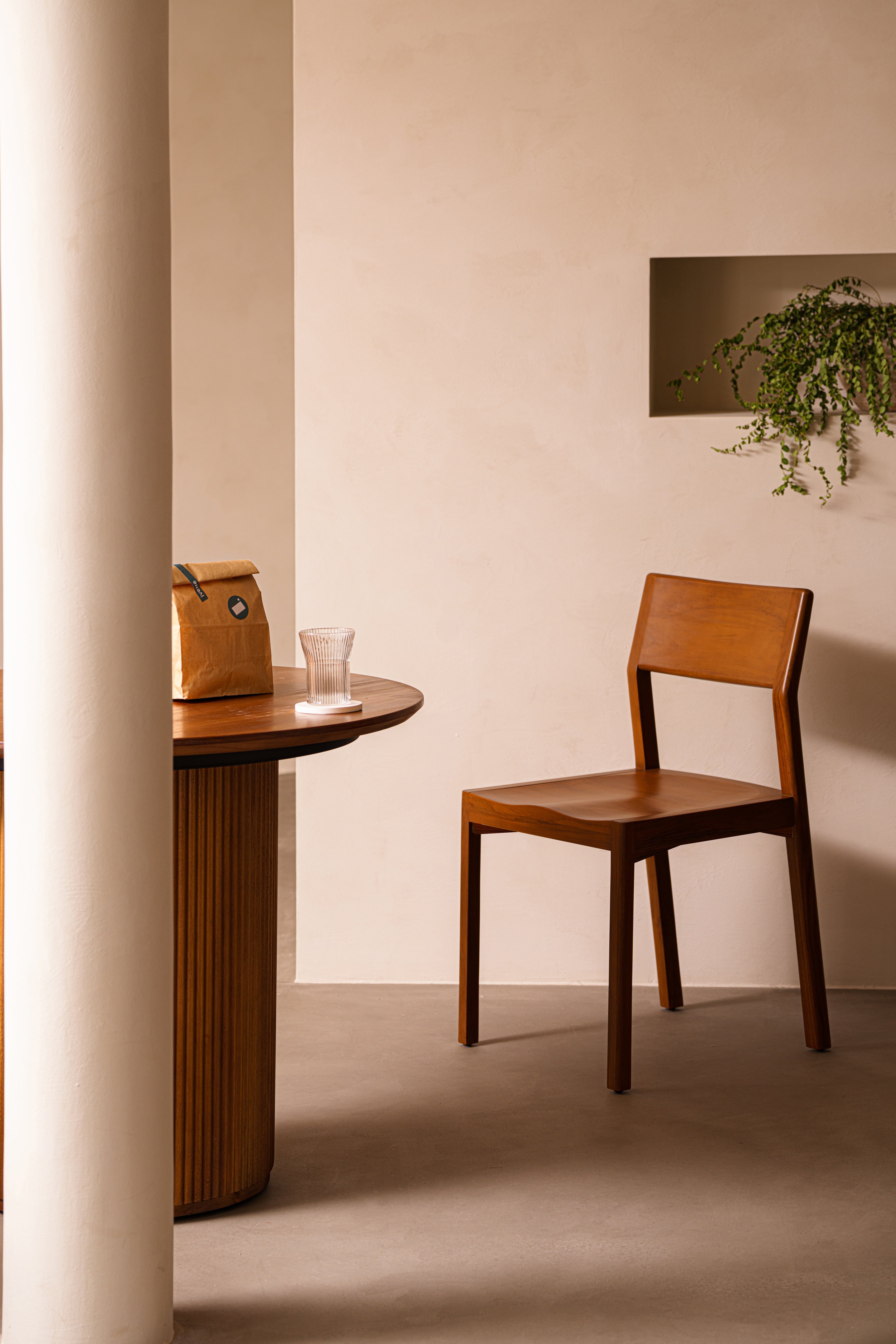 I’m Rita, the wooden dining chair – svelte, slimline, and subtly curved. Made from solid reclaimed teak wood, I feature a hand-carved curved seat. Add a touch of bling with my solid brass caps or keep it simple and natural. I also pair perfectly with the Rita Table