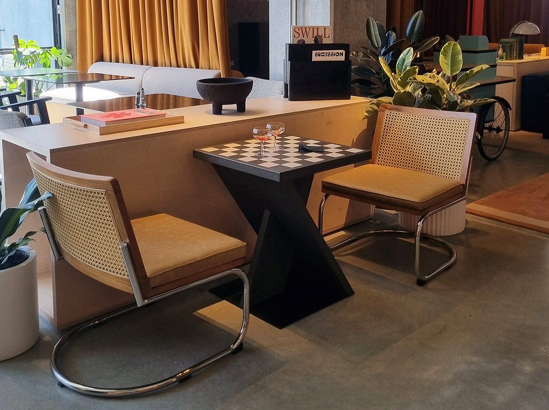 A local thicker leather is used for the Willy Sling Dining / Lounge chairs, to maximise durability and structural support.
