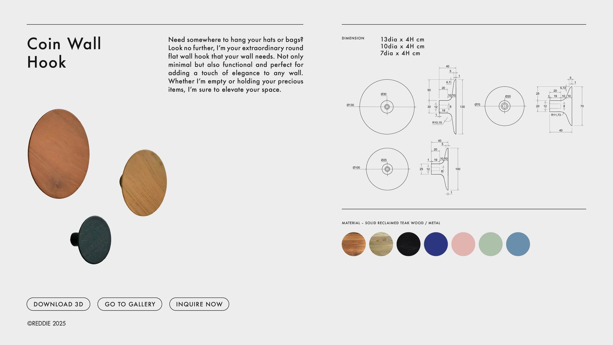 reddie-raw wall hooks 10dia x 4H *cm / Wood Teak~Natural Coin Wall Hook