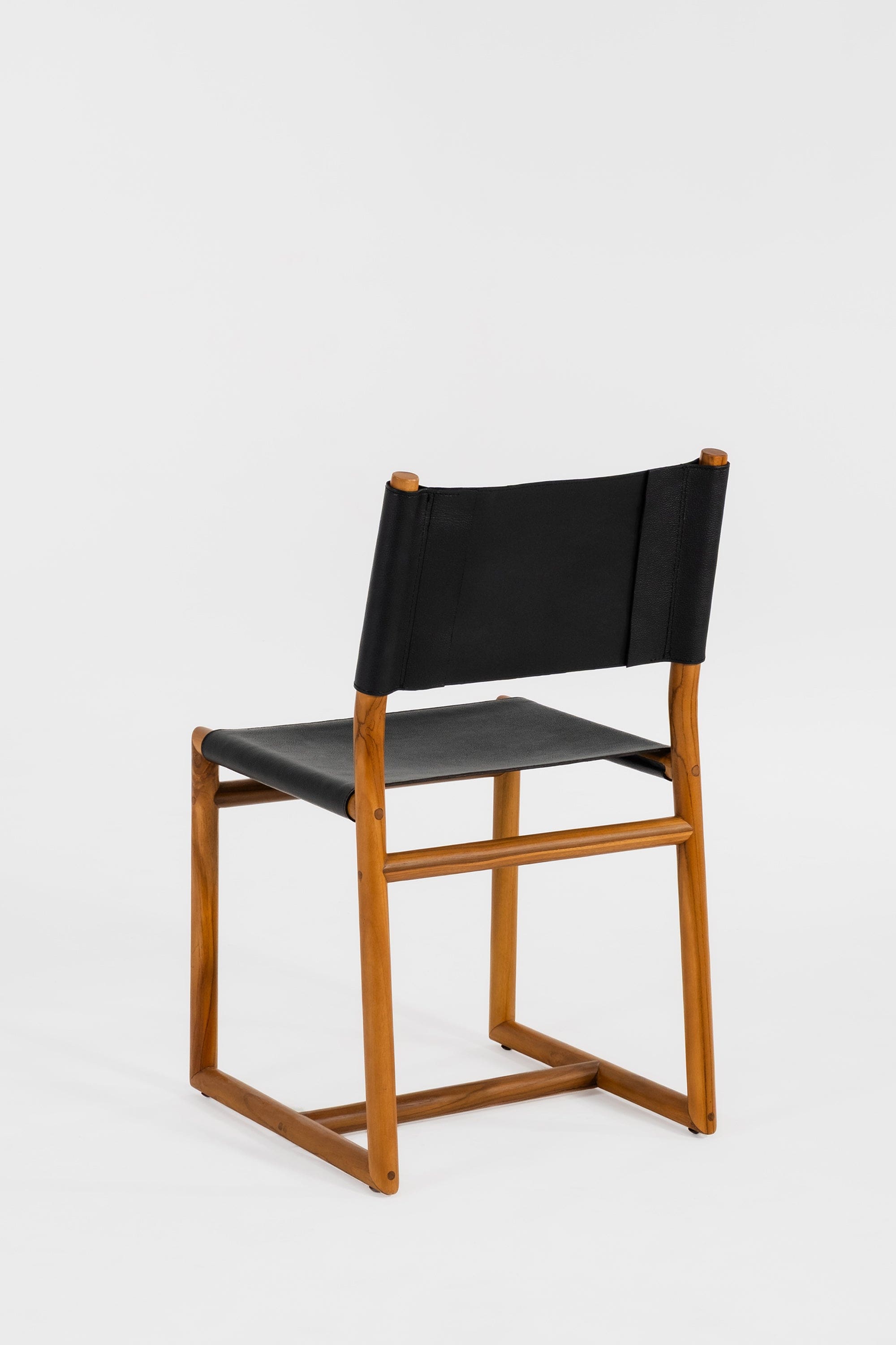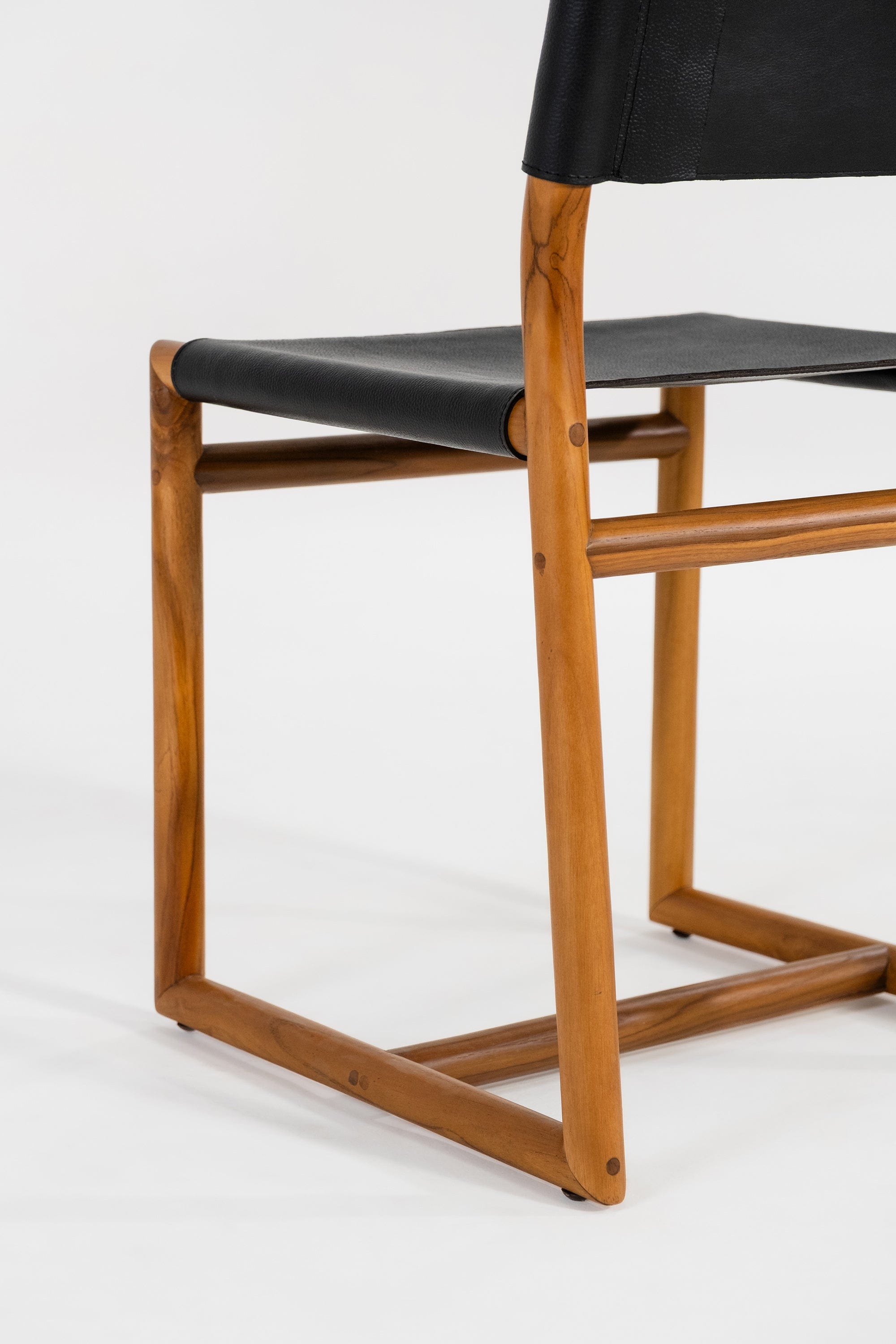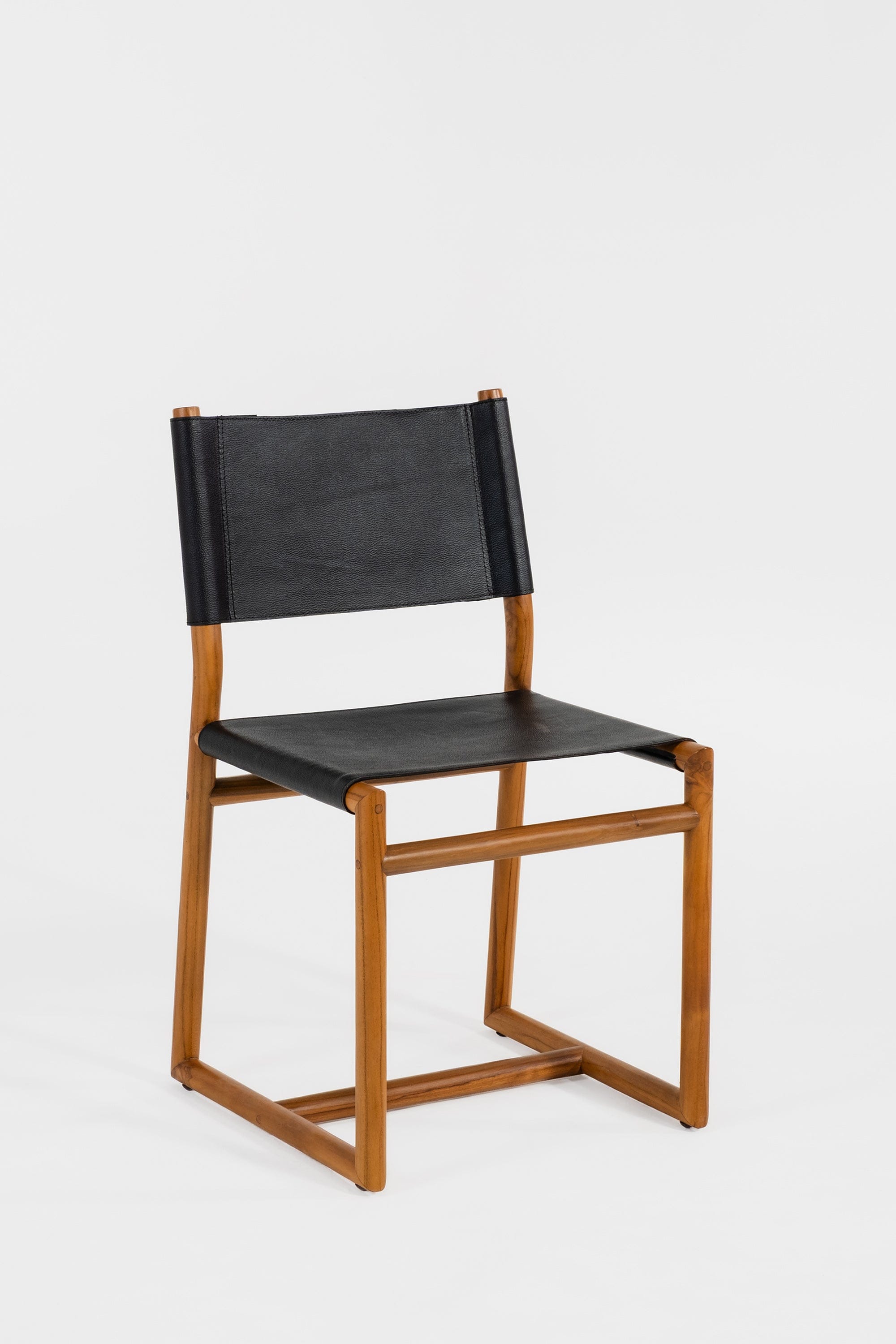 reddie-raw dining chair 50W x 51D x 83H *cm (45H seat) / Leather~Black / Solid Reclaimed Teak Wood~Natural Willy Sling Dining Chair Wood